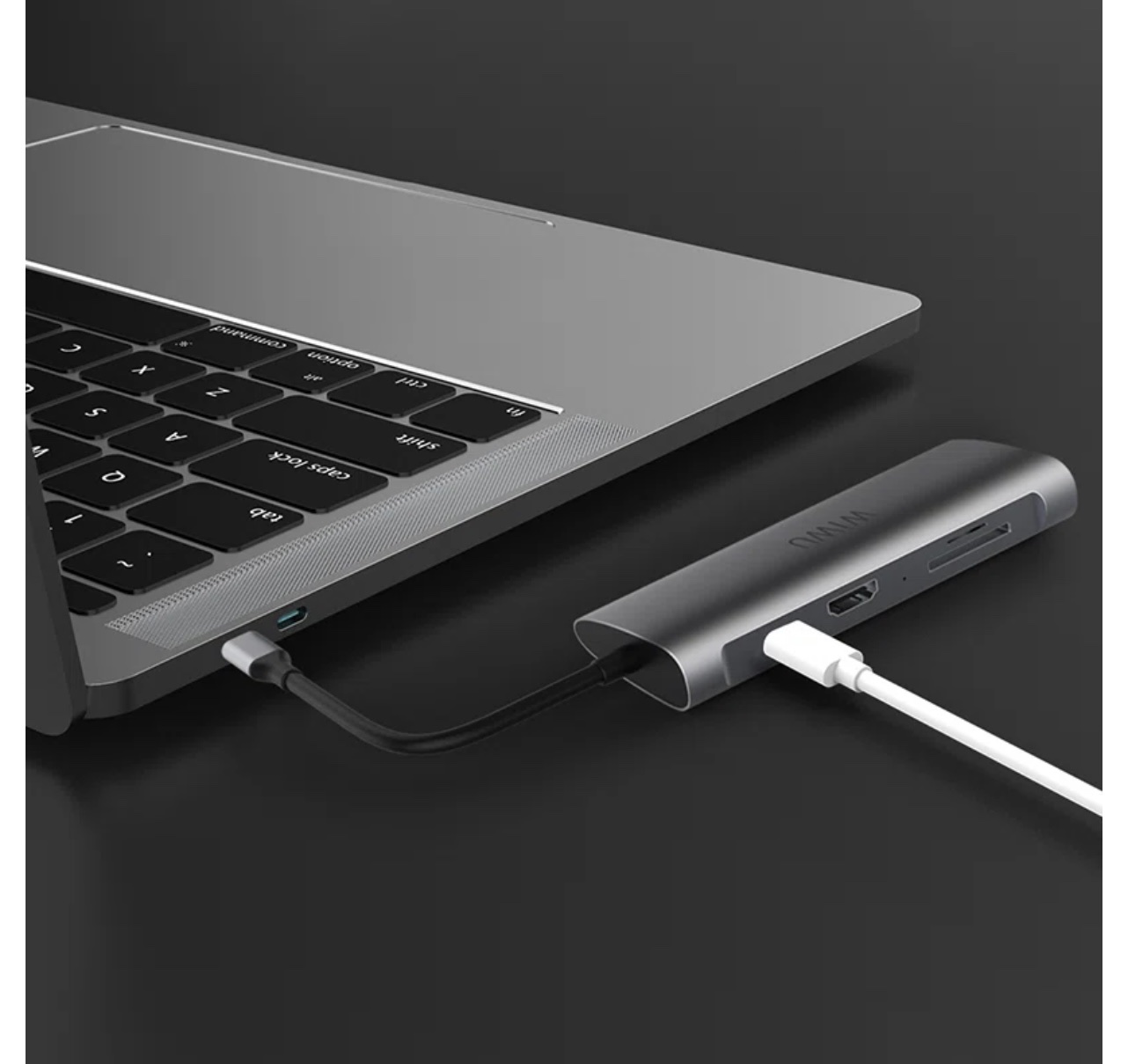 Hub Wiwu Cryber 5 in 1 #CB005 Thương hiệu: #Wiwu Chất liệu: Kính cường lực + hợp kim kẽm, chống trầy xước, chống va chạm, tản nhiệt tốt Thân dây silicon mềm, cách nhiệt và