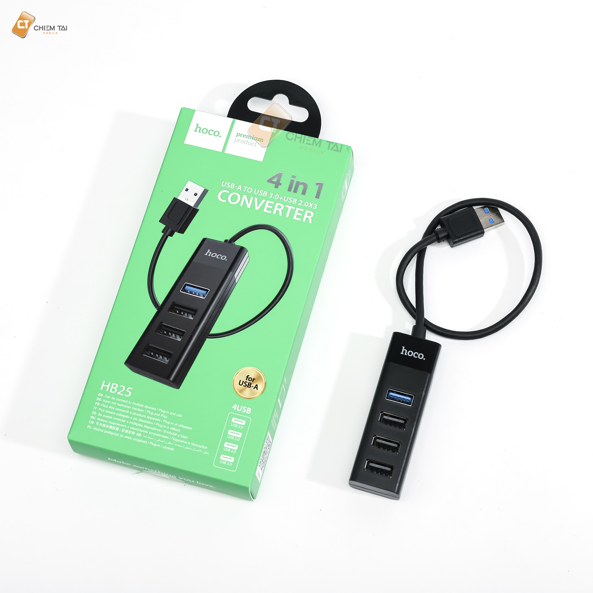 ✨HUB USB 4 cổng Hoco truyền dữ liệu ổn định mở rộng cổng kết nối cho PC/Laptop HB25 - Hàng nhập khẩu