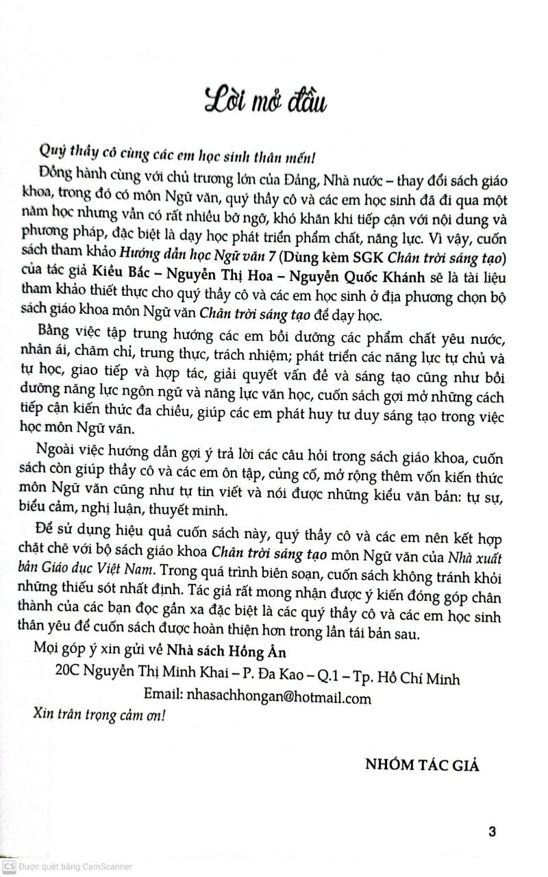 Mua tại TiktokHướng Dẫn Học Ngữ Văn 7- Tập 2 (Bám Sát SGK Chân trời sáng tạo ) Với mong ước giảm bớt gánh nặng cho quý thầy cô và giúp các em khám phá vẻ kì thú của văn chương, Nhà sách gửi đến bạn đọc bộ sách tham khảo Ngữ văn 7 (dùng cho bộ sách giáo khoa bám sát sách giáo khoa chân trời sáng tạo ). Mỗi bộ sách tham khảo sẽ bám sát chương trình của từng bộ sgk mới. Phần gợi ý theo hướng mở, có các câu hỏi mở rộng, nâng cao,… phù hợp với phương pháp dạy học phát triển phẩm chất và năng lực. Với kiến thức sâu rộng từ những tác giả có bề dày giảng dạy trong nhiều năm, chắc chắn các quyển sách do Nhà sách chúng tôi phát hành sẽ đảm bảo chặt chẽ về mặt nội dung lẫn cách trình bày, giúp các em học sinh dễ dàng tiếp thu kiến thức từ cơ bản đến nâng cao, góp phần thúc đẩy sự yêu thích và say mê trong học tập và rèn luyện, phát triển trí tuệ và nâng cao năng lực bản thân. Chúc các em trở thành những người con ngoan trò giỏi của gia đình và xã hội.