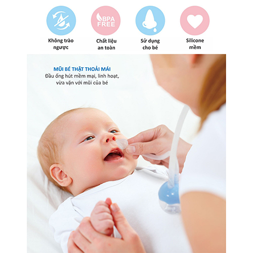 - Sản phẩm được làm bằng chất liệu silicone mềm mại, không chứa BPA nên an toàn cho bé khi dùng. - Sản phẩm giúp hút sạch chất nhầy, giữ cho bé cảm giác thoải
