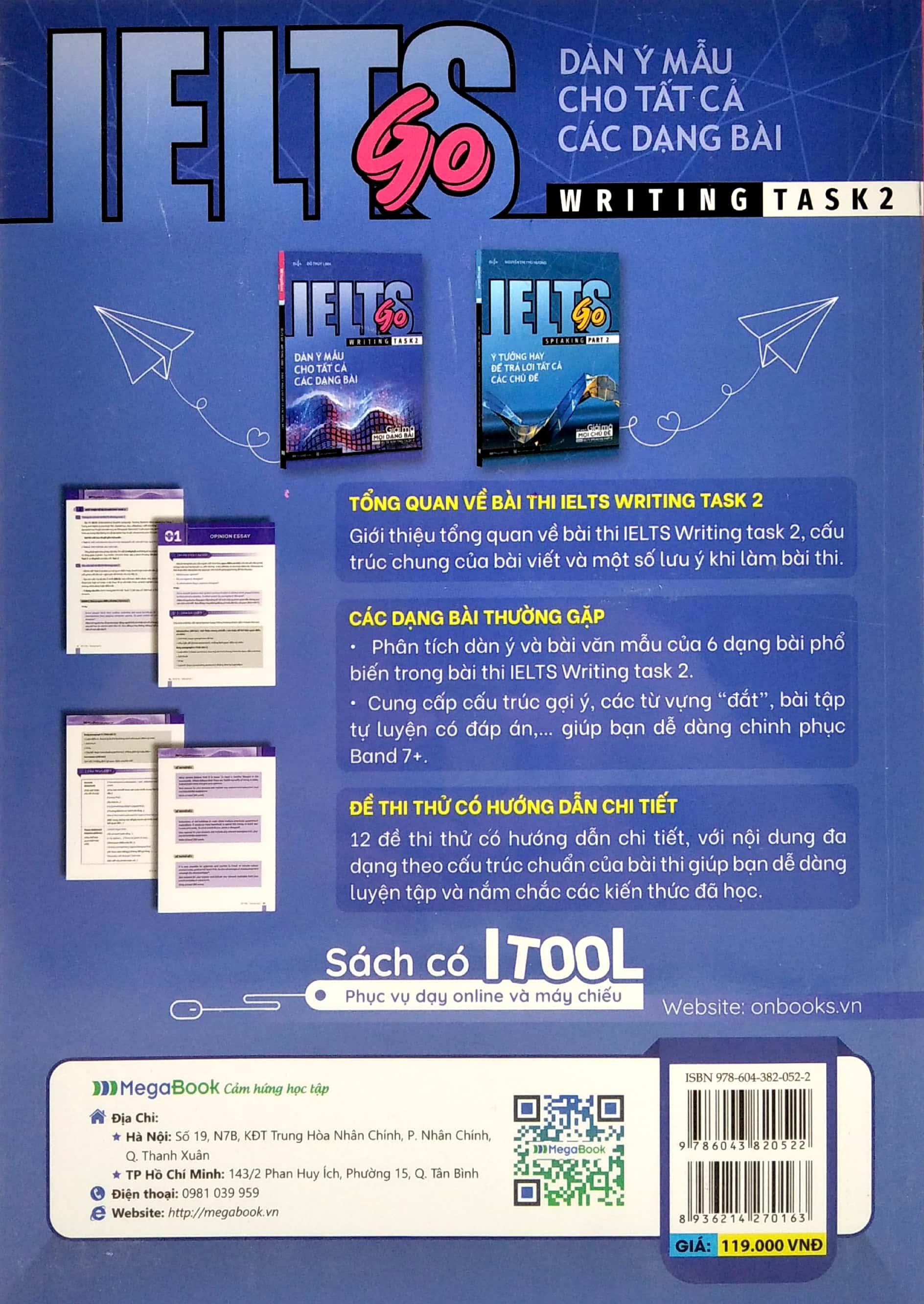Nội dung cuốn sách "IELTS GO - Writing task 2 - Dàn ý mẫu cho tất cả các dạng bài" được hệ thống một cách khoa học, logic: