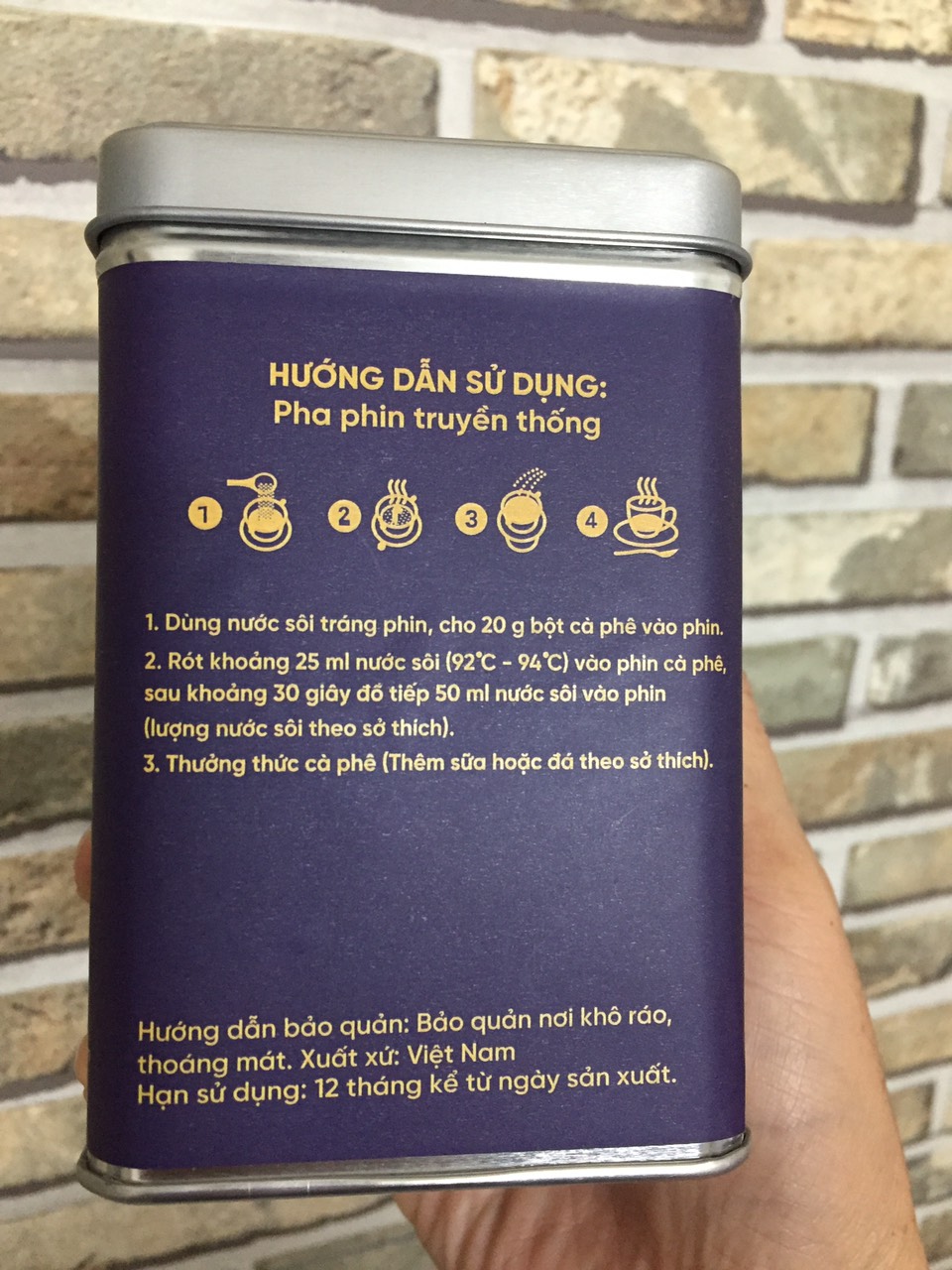 Cách pha: Pha phin hoặc sử dụng máy pha cà phê. Thích hợp với uống không đường, không đá Thích hợp: Làm quà tặng cho người thân, bạn bè, khách hàng lớn Bao bì: Thiết