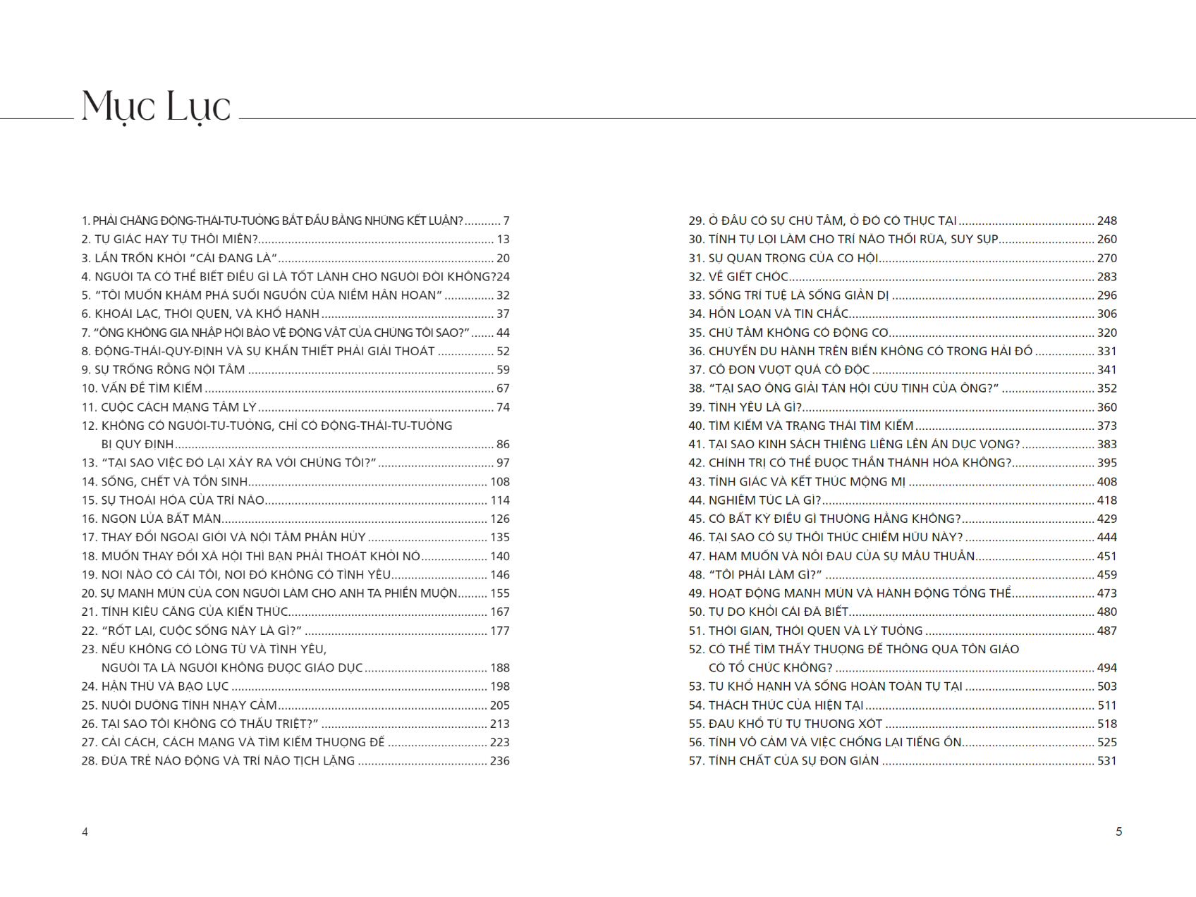 Với lối dẫn dắt từ cảnh đến người, từ thiên nhiên đến đời sống, Krishnamurti đã dắt tay người đọc chạm vào chìa khóa của việc tìm ra ý nghĩa của đời sống là gì? Tập 3, với các chủ đề: sự nhạy bén, vấn đề xoay quanh việc tìm kiếm, tầm quan trọng của thay đổi… chính là cánh cửa phía sau chiếc chìa khóa đó.