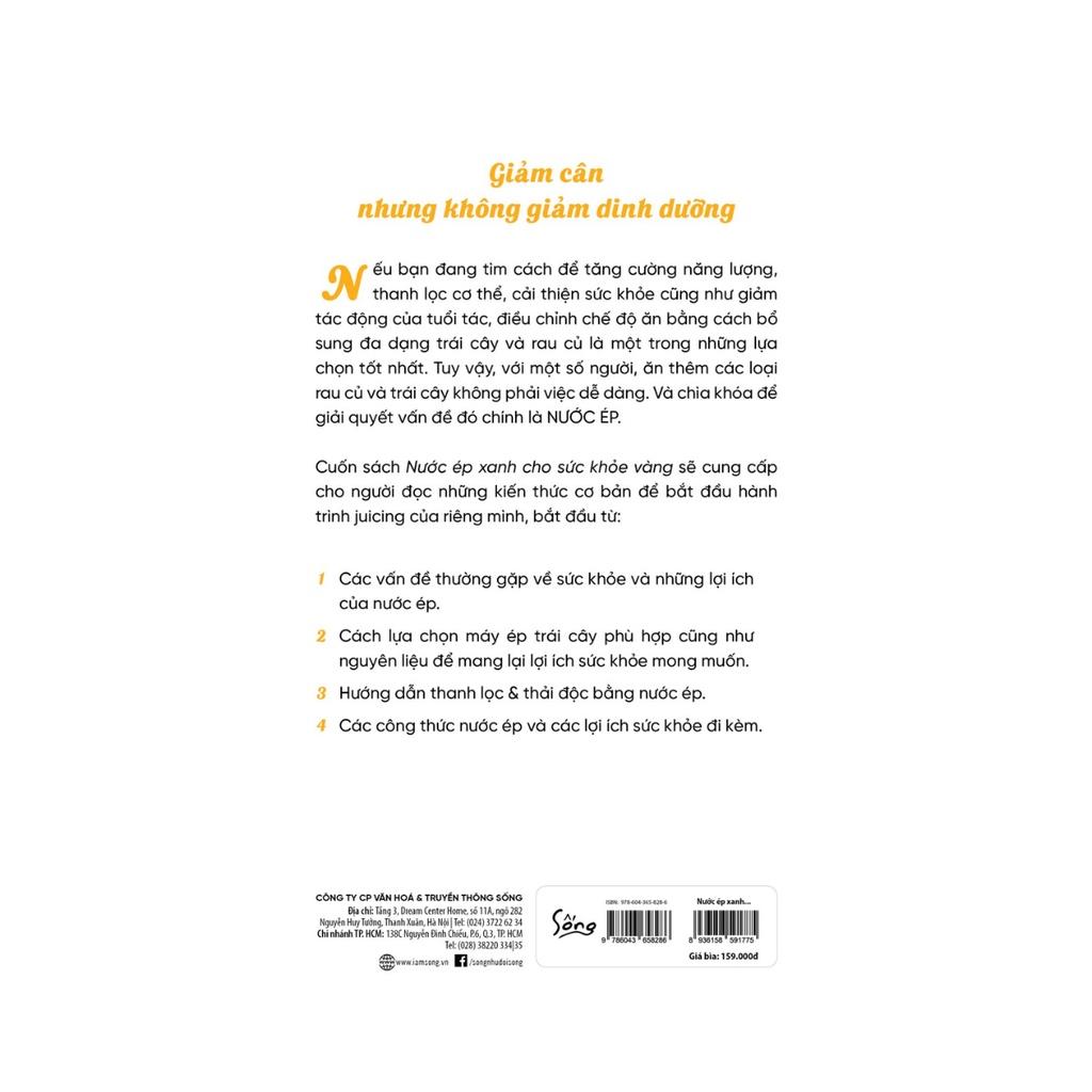 Mua tại TiktokCông ty phát hành: Medinsights Tác giả: Rockridge Press Kích thước: 16x22cm Hình thức: Bìa mềm, tay gấp Số trang: 196 NXB: NXB Thế Giới Năm xuất bản: 2023 Nếu bạn đang tìm cách để tăng cường năng lượng, thanh lọc cơ thể, cải thiện sức khỏe cũng như giảm tác động của tuổi tác, điều chỉnh chế độ ăn bằng cách bổ sung đa dạng trái cây và rau củ là một trong những lựa chọn tốt nhất. Tuy vậy, với một số người, ăn thêm các loại rau củ và trái cây không phải việc dễ dàng. Và chìa khóa để giải quyết vấn đề đó chính là NƯỚC ÉP. Cuốn sách Juice - Nước ép xanh cho sức khỏe vàng sẽ cung cấp cho người đọc những kiến thức cơ bản để bắt đầu hành trình juicing của riêng mình, bắt đầu từ: