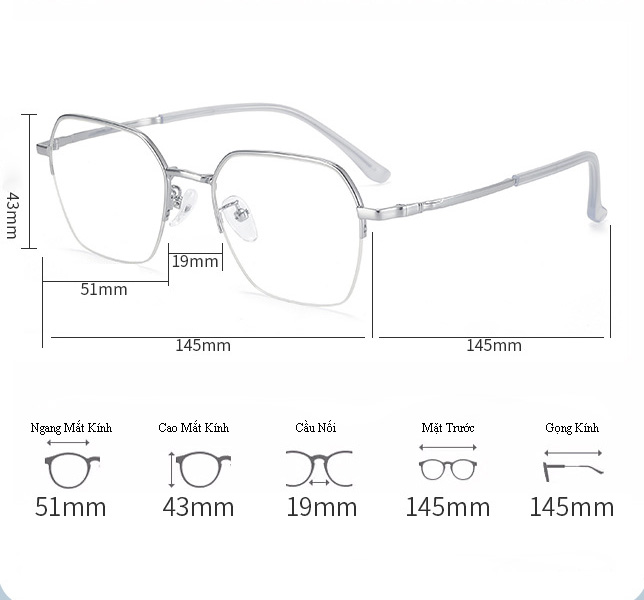 - Form kính : chữ nhật, mua về có thể thay tròng theo sở thích như cận, loạn, thoải mái luôn ạ - Màu sắc: SHOP GỬI MÀU BẠC NHA -Kích thước : freesize (