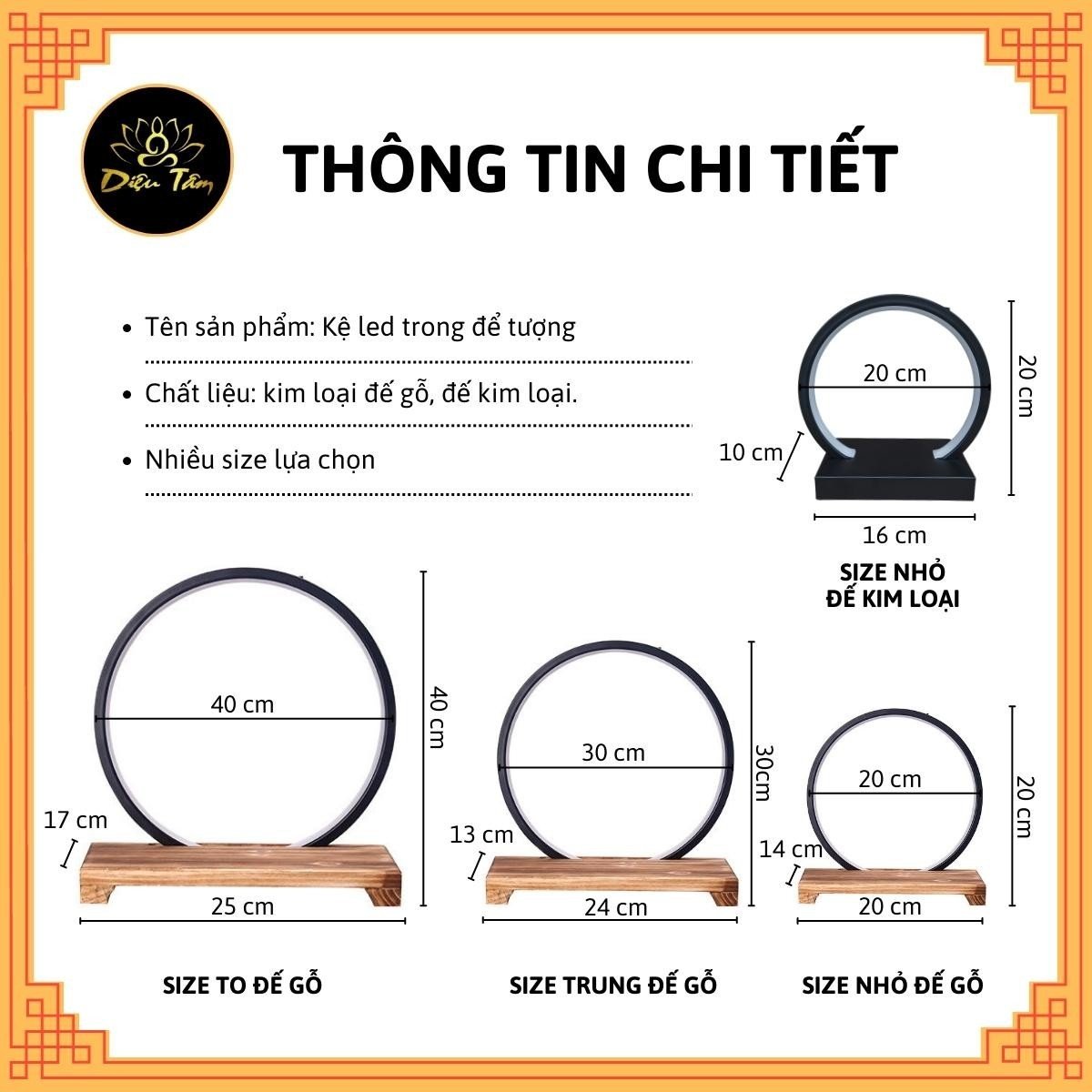 - Công dụng: đèn led vòng trong giúp ánh sáng tập trung vào chủ thể 360 độ giúp làm nổi bật chủ thể bên trong đèn. Kệ đèn led tròn được ứng dụng để trang trí tượng phật như tượng phật quan âm , tượng phật dược sư, hoàng thần tà Và nhiều tượng phật khác, thác khói trầm hương, tiểu cảnh trang trí decor bàn thờ, ban thần tài, đồ thờ cúng ,đồ phong thủy, bàn trà giúp làm nổi bật chủ thể trong đèn,