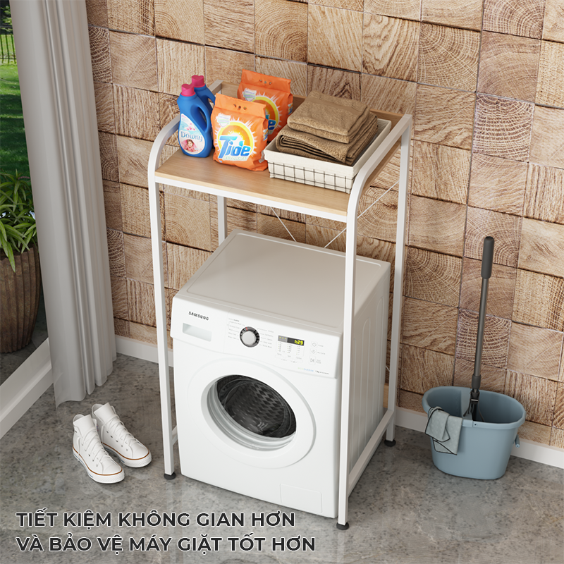 Công năng: Là mẫu kệ máy giặt giúp bạn sắp xếp đồ đạc và dụng cụ phòng giặt gọn gàng đặc biệt là các căn hộ có diện tích hạn chế.