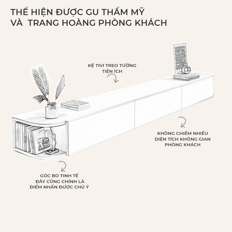 Kệ tivi treo tường bo cong hiện đại | Nội thất Tada Việt Nam | 0906092262