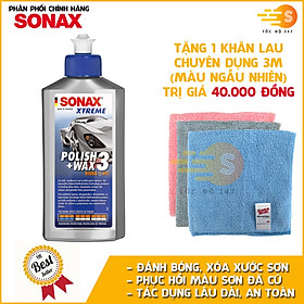 ✨Kem đánh bóng, xóa xước và bảo vệ sơn xe ô tô 3in1 Sonax 202100 250ml - Tặng 1 khăn lau 3M màu ngẫu nhiên - phục hồi sơn cũ, xóa vết xước nhỏ và bảo vệ sơn xe toàn diện