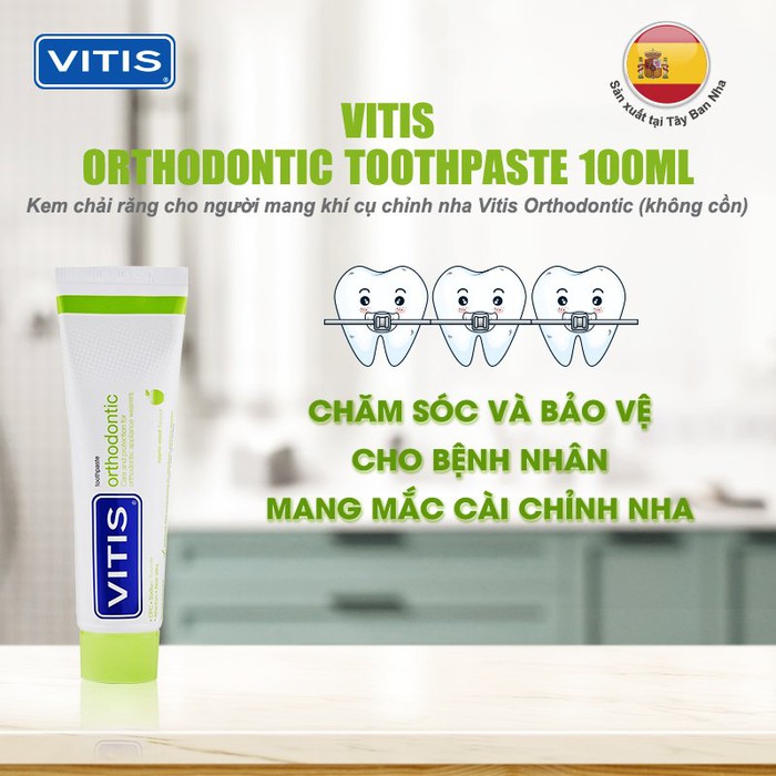 • VITIS Orthodontic là kem đánh răng sử dụng hàng ngày cho người mang khí cụ chỉnh nha.