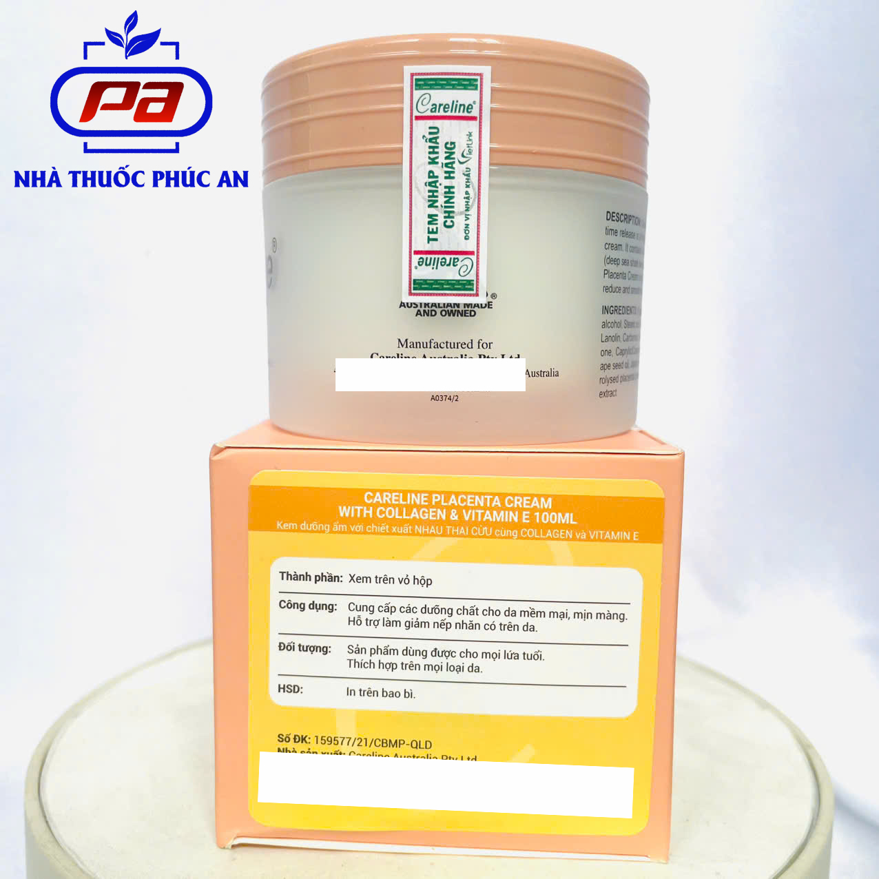 Mua tại TiktokKem dưỡng ẩm nhau thai cừu Careline Placenta Cream 100ml giúp da mịn giảm nếp nhăn chống lão hoá THÀNH PHẦN: Water, Mineral Oil, Petrolatum, Cetearyl Alcohol, Stearic Acid, Propylene Glycol, Grape Seed Oil (Tinh dầu hạt nho), Ceteth-10, Lanolin, Carbomer, Tocopheryl Acetate (Vitamin E), Avocado Oil, Jojoba Seed Oil, Hydrolysed Collagen, Hydrolysed Placental Protein, Aloe Barbedensis Leaf Extract, Caprylic/Capric Triglyceries, Diazolidinyl Urea, Dimethicone, Glyceryl Stearate. CÔNG DỤNG: