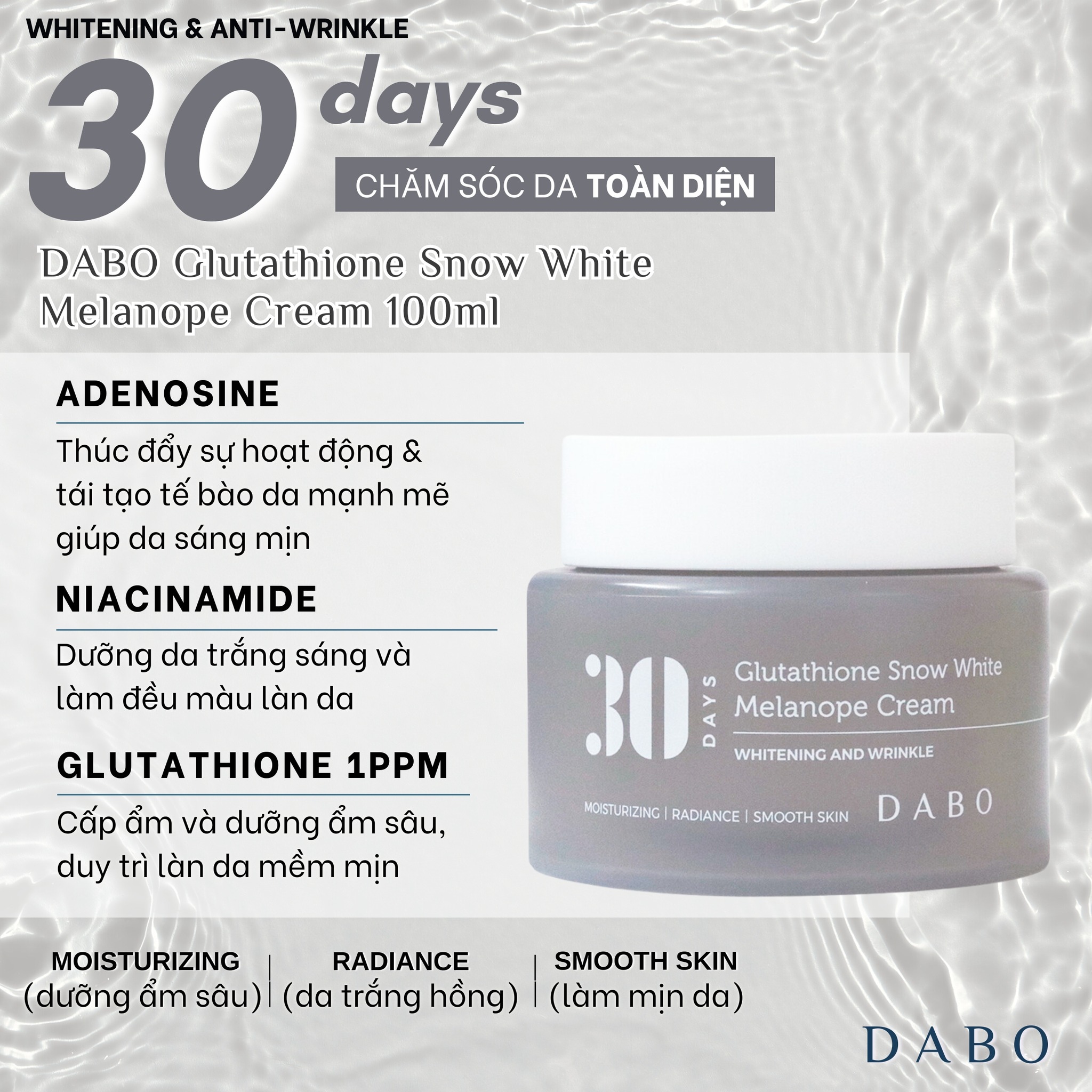 Kem dưỡng trắng da Glutathione dưỡng da chống nhăn nâng cơ mờ thâm nám - DABO Glutathione Snow White Melanope Cream 100mlKem dưỡng trắng da Glutathione dưỡng da chống nhăn nâng cơ mờ thâm nám - DABO Glutathione Snow White Melanope Cream 100mlKem dưỡng trắng da Glutathione dưỡng da chống nhăn nâng cơ mờ thâm nám - DABO Glutathione Snow White Melanope Cream 100ml