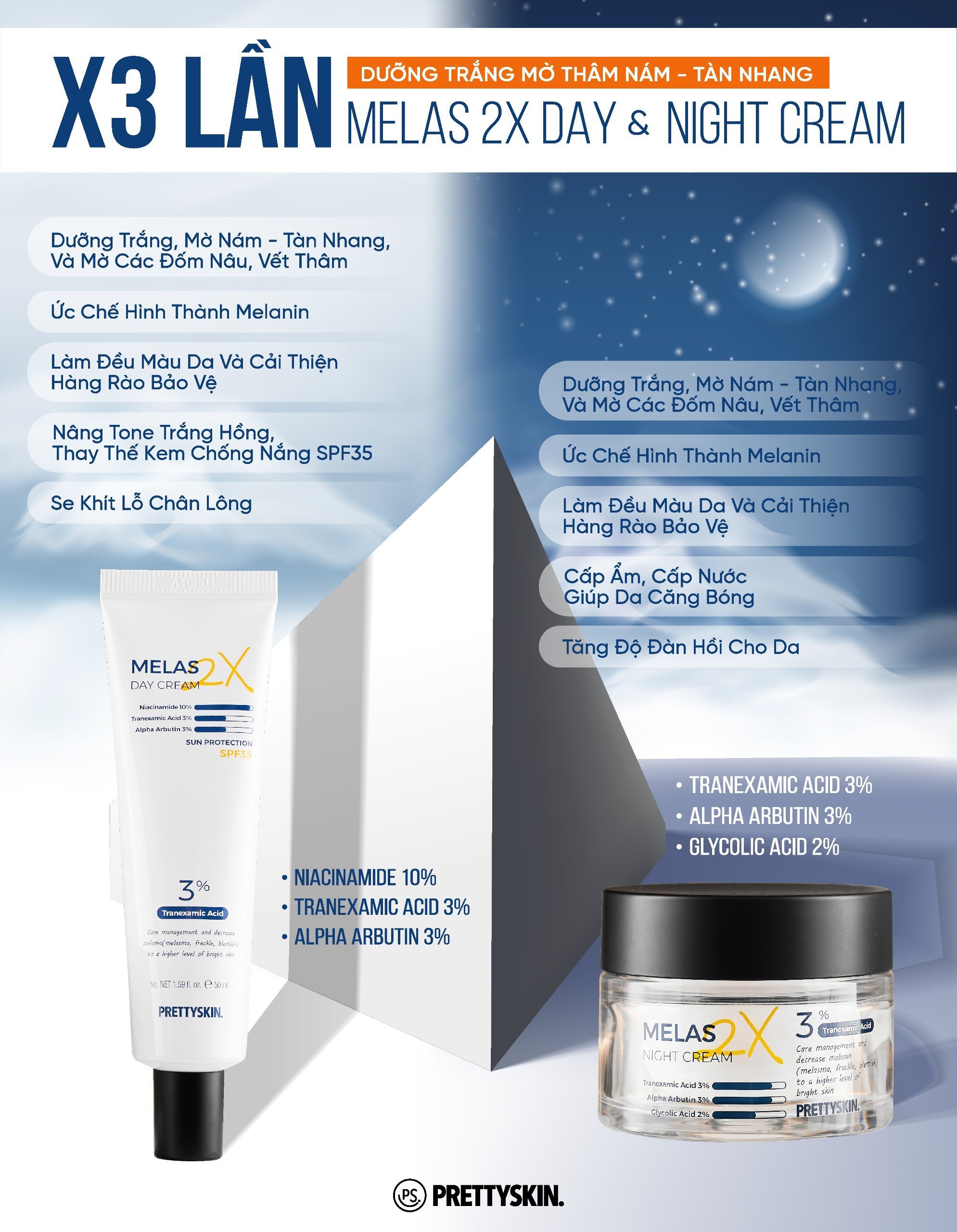 prettyskin #melas2xprettysin #melasx #melas2x #Prettyskin #kemduongprettyskin #kemduongngaydem #kemduongtrang #mothamnam #duongtrang #melas2x #Tranexamicacid #Alphaarbutin #Niacinamide #Glycolicacid