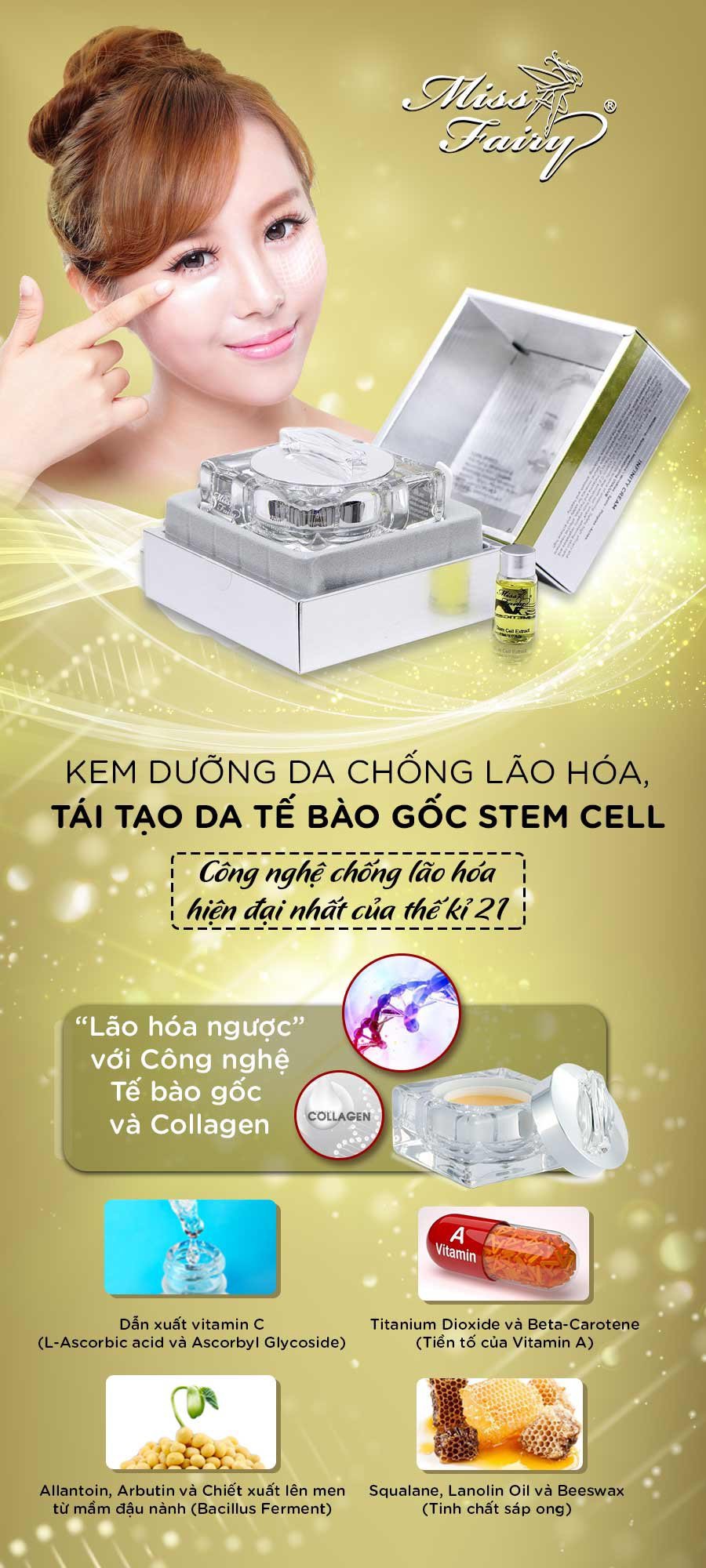 Kem dưỡng da lão hóa, tái tạo da Tế bào gốc Stem Cell Miss Fairy – Công nghệ phục hồi da lão hóa hiện đại nhất của thế kỉ 21 Công nghệ ngăn lão hóa