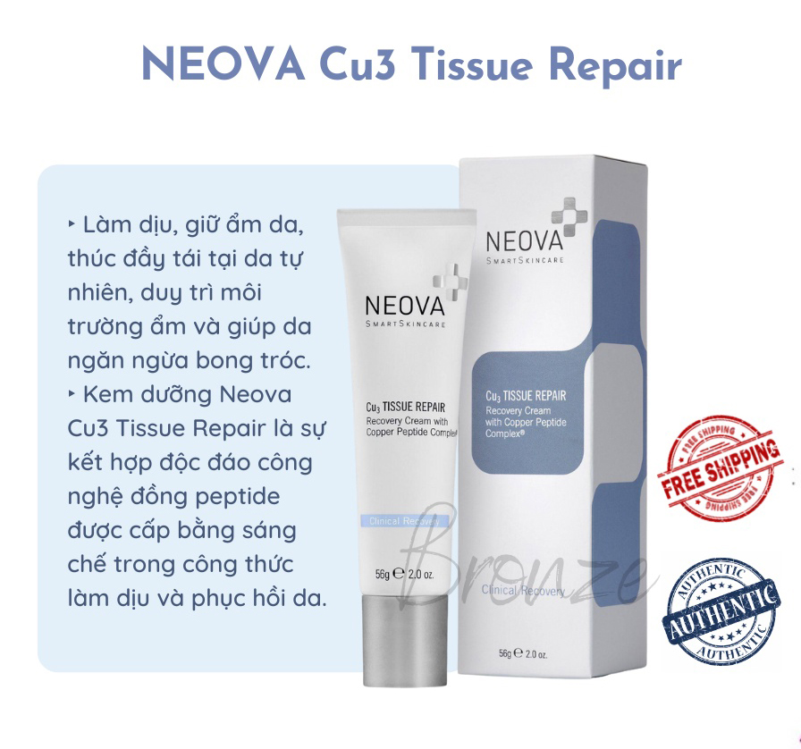 Thấu hiểu nhu cầu của khách hàng, hãng – Mỹ đã nghiên cứu và cho ra đời dòng Neova Cu3 Tissue Repair. Đây là dòng kem dưỡng siêu phục hồi da tổn thương sau laser, bỏng hay lăn kim đã nhận được sự đánh giá tích cực từ các chuyên gia cũng như những khách hàng đã sử dụng qua.