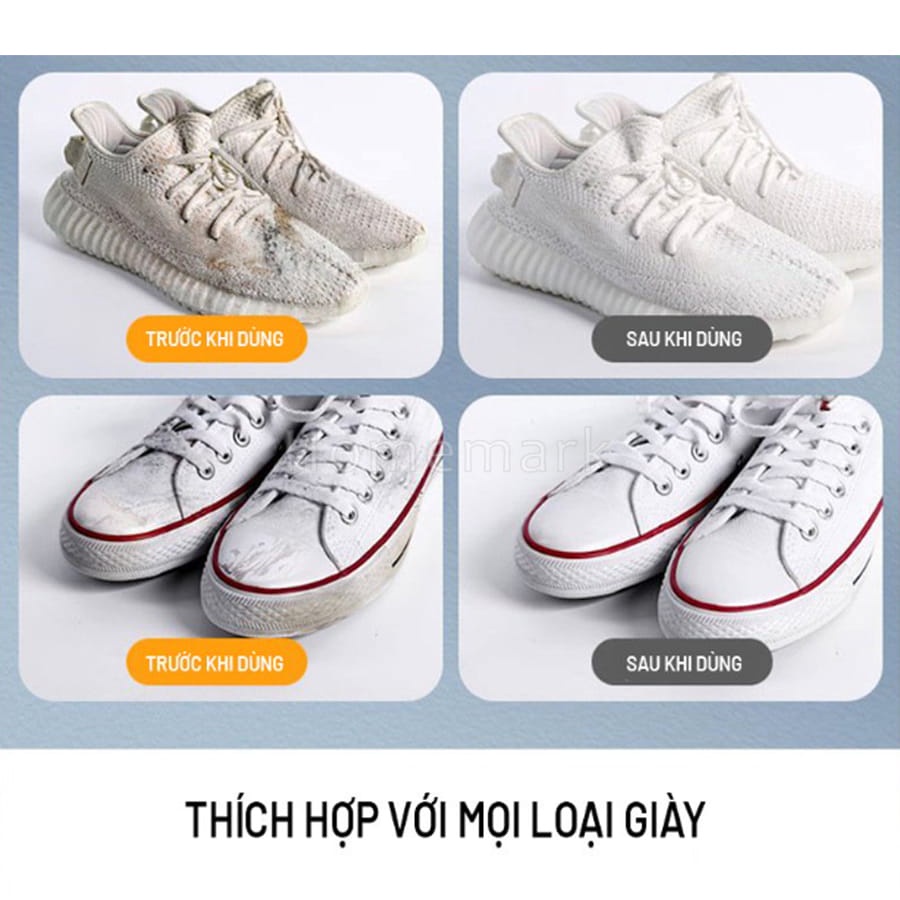 Thông Tin Sản Phẩm Công dụng : Làm sạch các vết bẩn, vết ố nhanh chóng, giúp đôi giày của bạn sáng bóng, trắng sạch như mới.dùng cho tất cả các loại giày sneaker và
