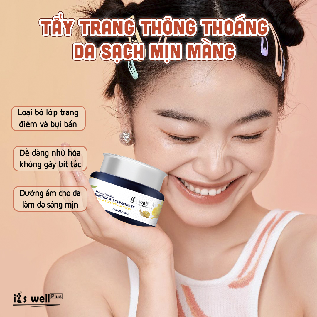 - Kem Tẩy Trang Mát Xa Dưỡng Sáng Da It's Well Plus Snail Calendula Prestige Make Up Remover Cleansing Oil Cream CPOC (100ml) - Đây là sự kết hợp hoàn hảo giữa dạng dầu và