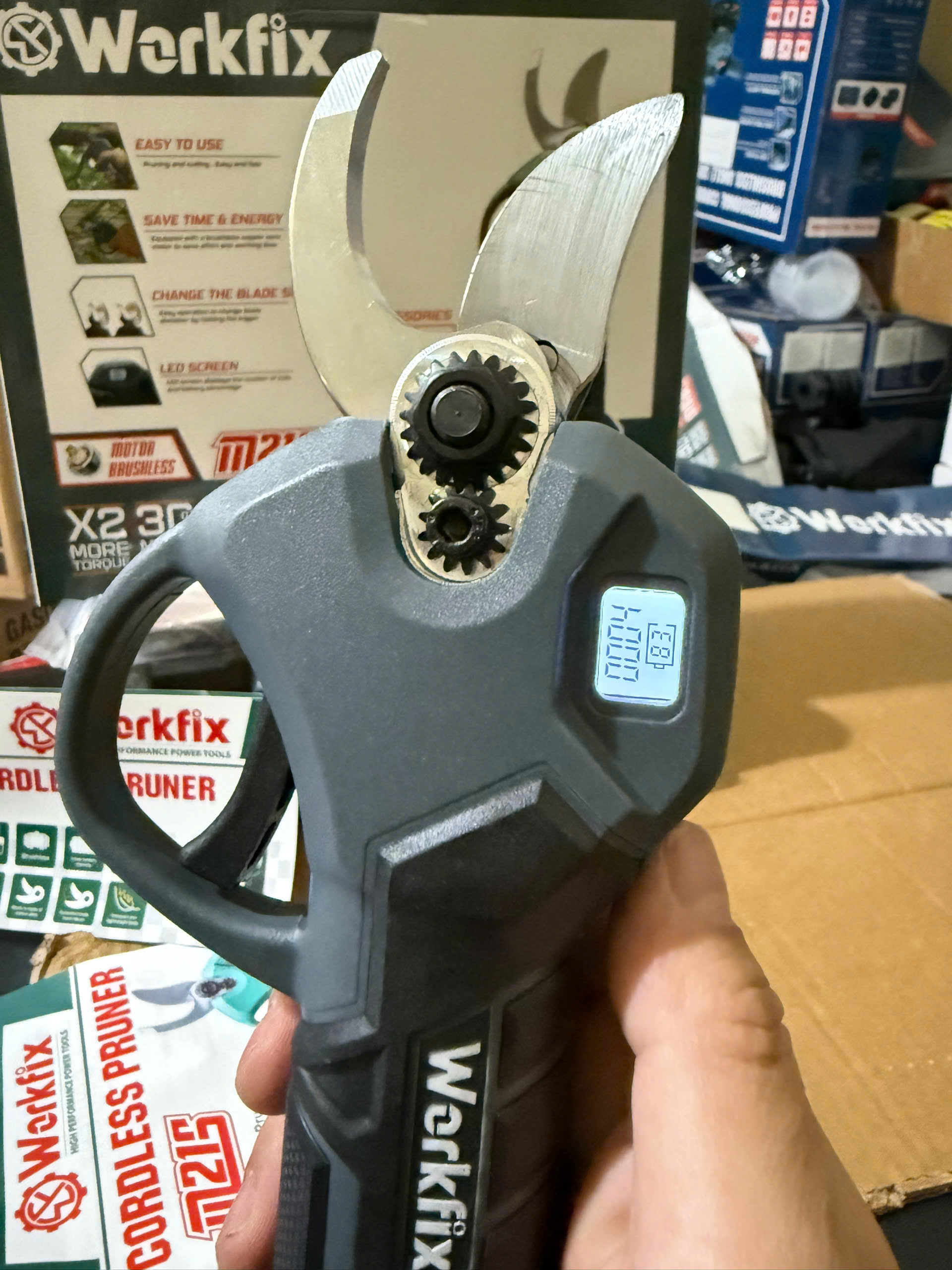 ✨Kéo cắt cành pin WORKFIX WF-CP30BL, Động cơ Không chổi than, Màn hình led hiển thị, Cắt 3cm