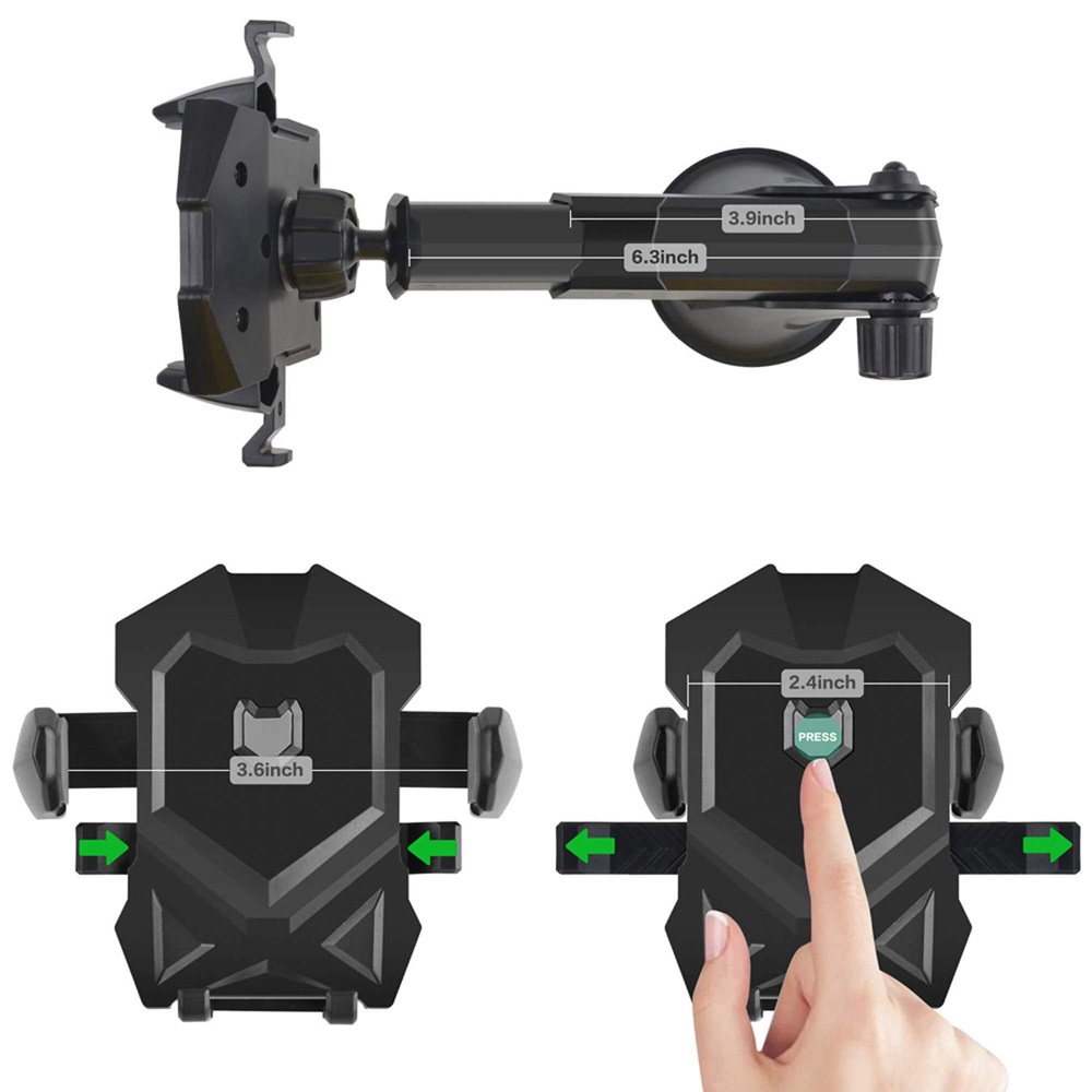 1. Suitable for 4.7-7.2 inches screen phones 2. Rotatable pivot structure allows multi-angle adjustable 3. Auto-Clamp Linkage: lock your phone tightly with five gravity arms 4. Arc-Shaped mounting clip: Firm Grip Onto Air Vent 5.