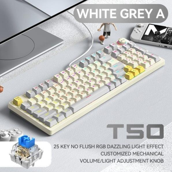 Bàn phím cơ T-WOLF T50 Blue Switch: lựa chọn nhỏ gọn cho game thủ Bàn phím cơ T50 Blue Switch có thiết kế 97 phím Blue Switch cao cấp với 4 màu sắc nịnh mắt, khả