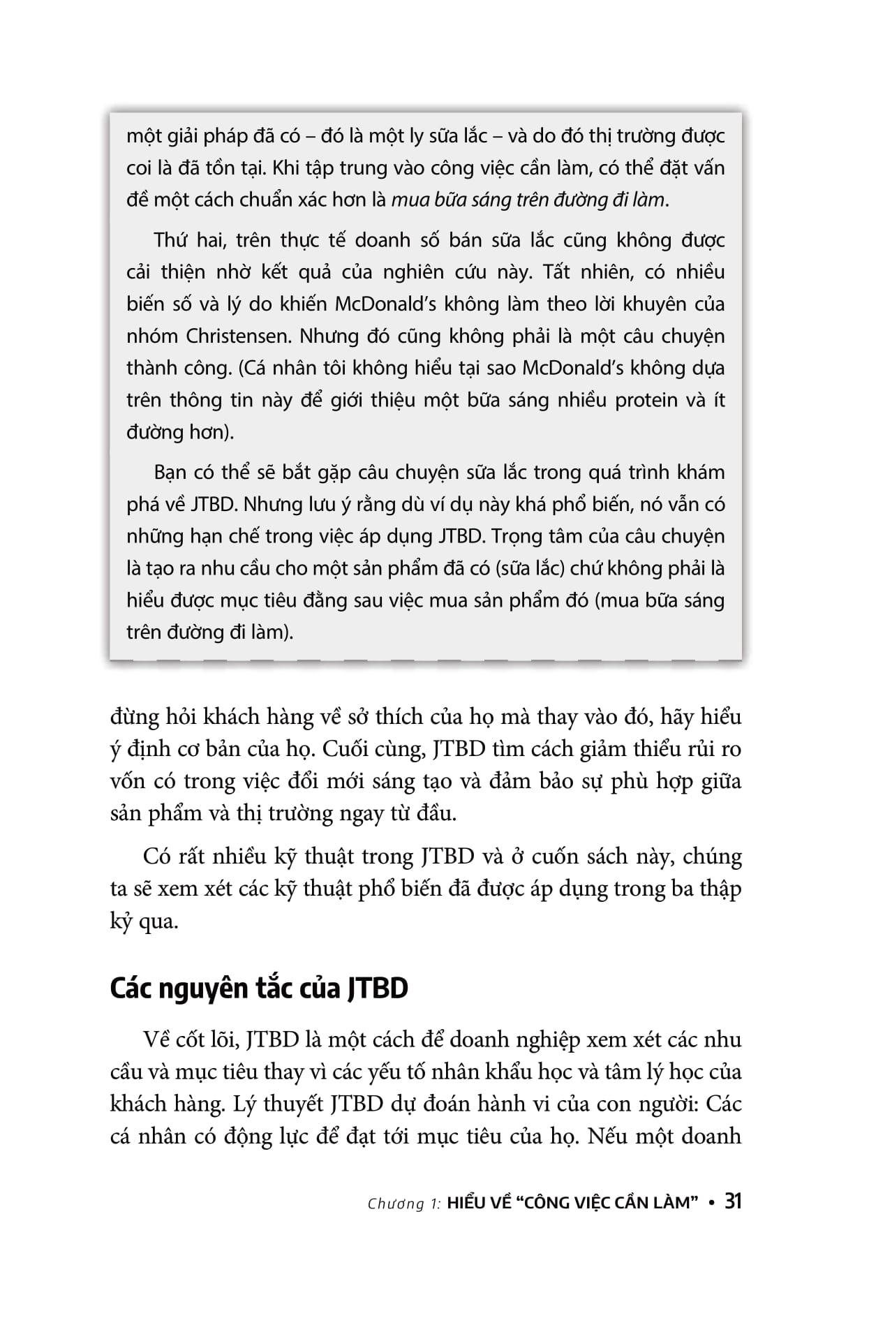 Đây là cuốn sách nhập môn hướng dẫn cho bạn về “Job to Be done” (hay JTBD), một lý thuyết đã được nghiên cứu gần 30 năm. Cuốn sách tập hợp các phương pháp đang được thực hành hiện nay mà tác giả Jim Kalbach gọi là “các chiến thuật”, mượn cách nói ẩn dụ “sổ tay chiến thuật” trong thể thao. Về cơ bản, chiến thuật là các kỹ thuật riêng lẻ tạo nền tảng để thực hiện JTBD.