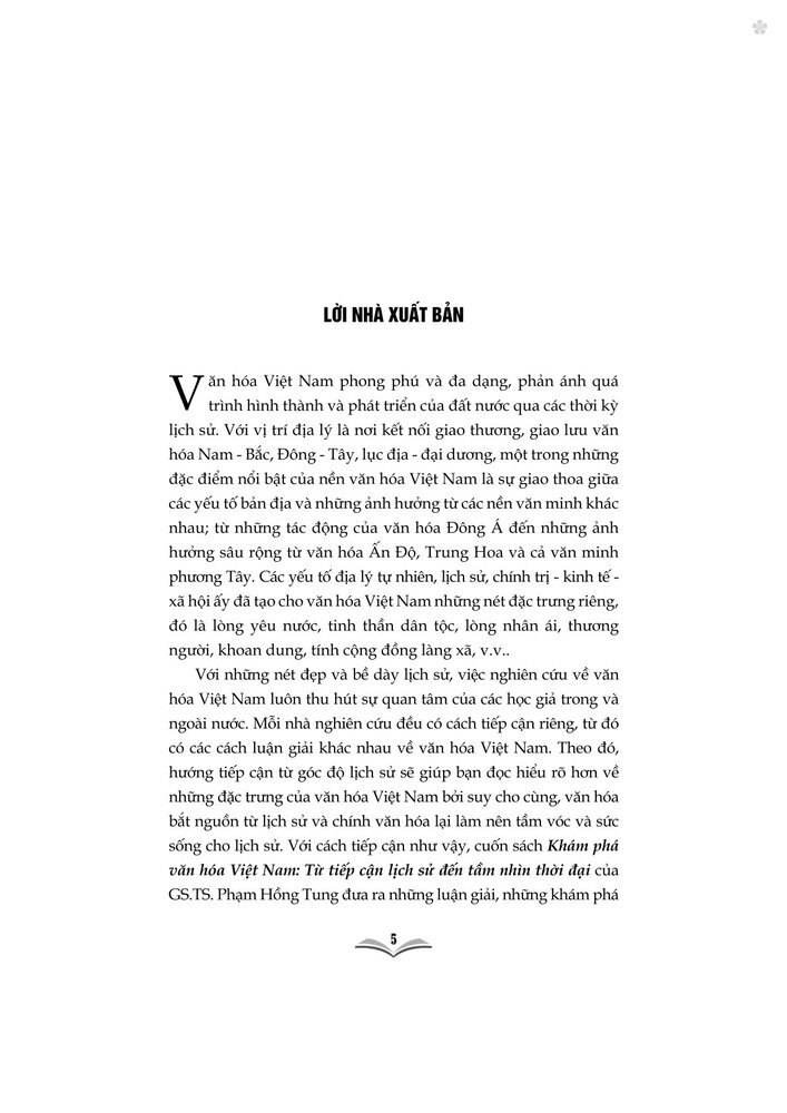 Mua tại TiktokCuốn sách “Khám phá văn hóa Việt Nam: Từ tiếp cận lịch sử đến tầm nhìn thời đại” gồm 17 chuyên luận, được chia thành các nhóm vấn đề cơ bản trong lịch sử văn hóa Việt Nam, gợi mở những hướng nghiên cứu mới, góp phần giữ gìn, phát huy những giá trị văn hóa tốt đẹp của dân tộc. Trân trọng giới thiệu cuốn sách tới bạn đọc!