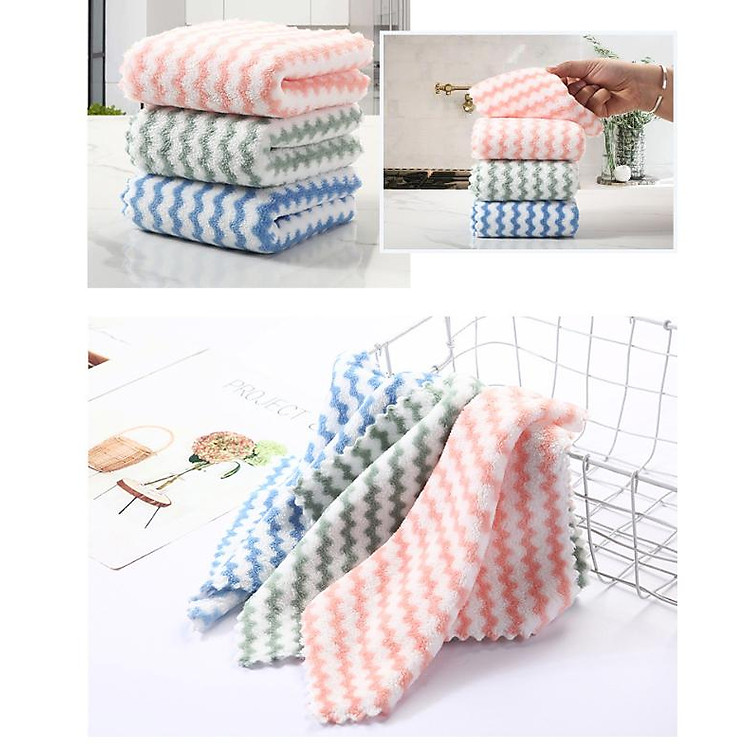 Mẫu khăn lau chùi đa năng này rất mềm, mịn. Thấm hút nước tốt, khăn dày, lau chùi tiện dụng. Những chiếc khăn lau chùi không nên sài cũ quá, ta thay mới và mang