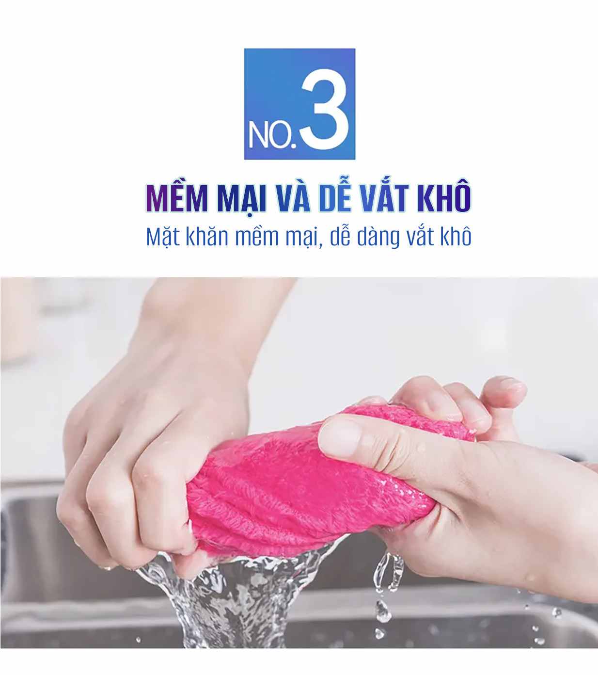 Khăn lau đủ mọi thứ trên đời nên khá tốn vì thay thường xuyên Khăn được feedback tốt, mềm mịn, thấm nước siêu tốt và vắt kiệt siêu nhanh khô, nhà ai cũng cần 1
