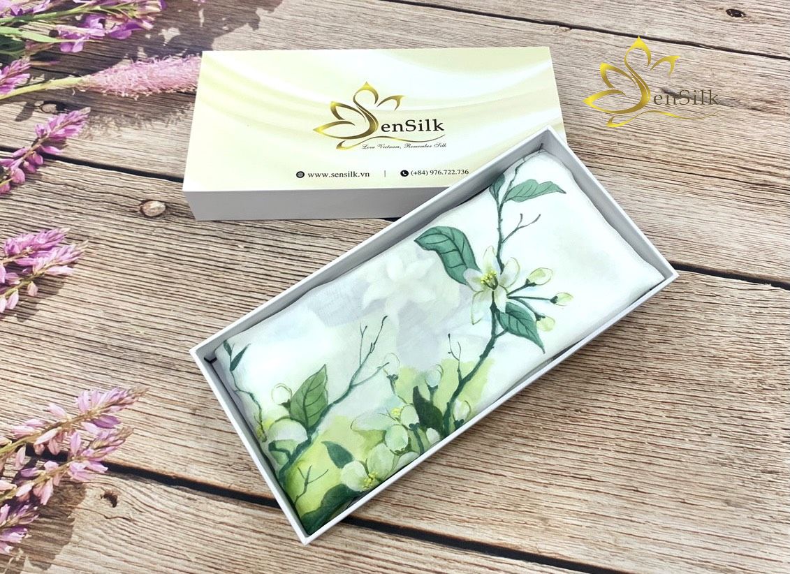 SenSilk – Lụa Tơ Tằm Thuần Việt kết hợp hài hoà giữa Lụa tơ tằm Bảo Lộc cao cấp với công nghệ in kỹ thuật số hiện đại tạo nên những chiếc khăn lụa in kỹ