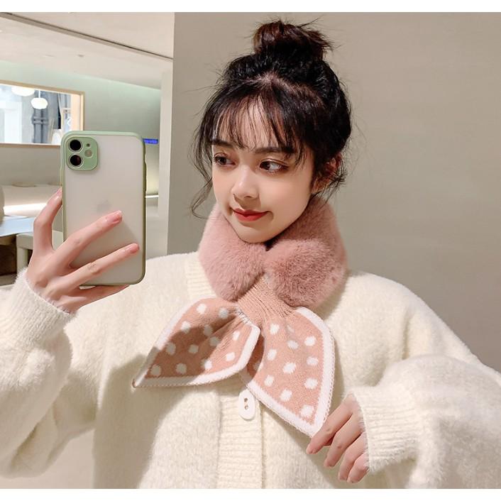 Khăn quàng cổ lông thỏ phối len thắt nơ ấm áp phong cách thời trang Dành Cho Nữ hot nhất 2020