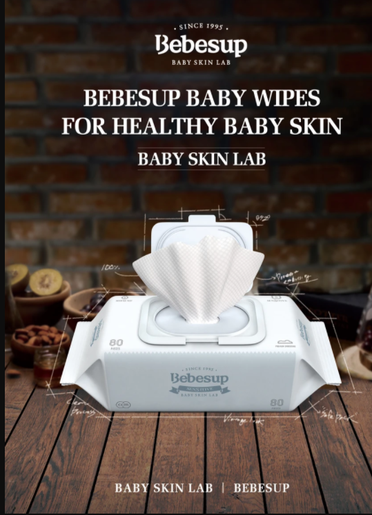 BEBESUP là loại khăn ướt cho cho trẻ em , được bình chọn là sản phẩm có lượng tiêu thụ cao trong tất cả các sản phẩm khăn ướt của Bebesup. Sản phẩm được làm bằng vải dập nổi độ dày 50gsm, chứa chiết xuất từ những thực phẩm xanh, để giữ cho làn da của bé sạch sẽ và không gây kích ứng.