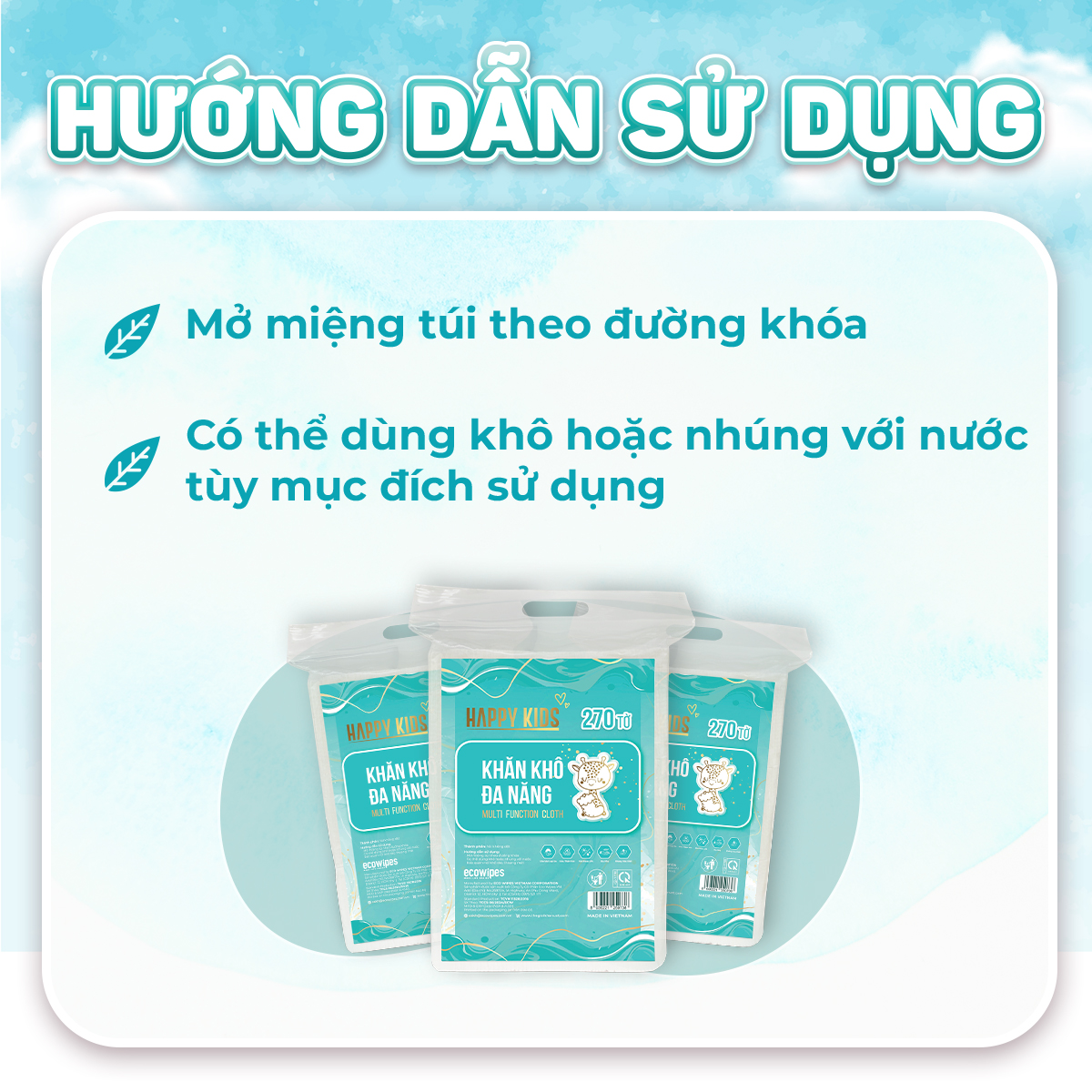 ✨Khăn vải khô đa năng Happy Kids EcoWipes túi 270 tờ không mùi không cồn không paraben an toàn cho da nhạy cảm