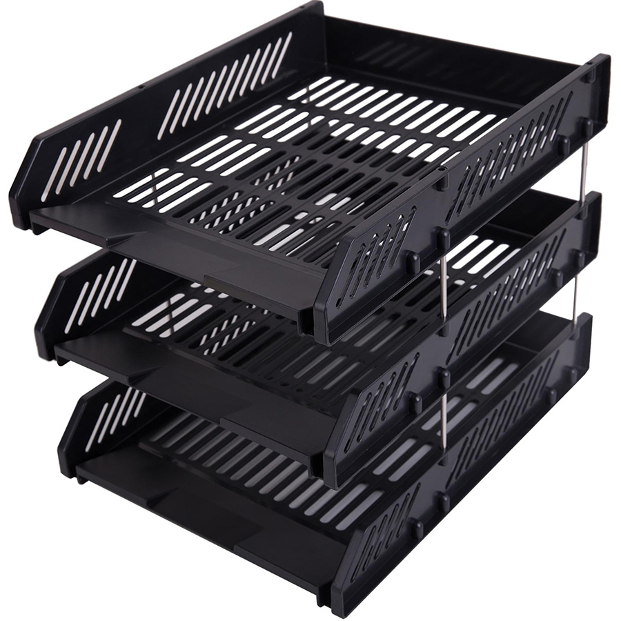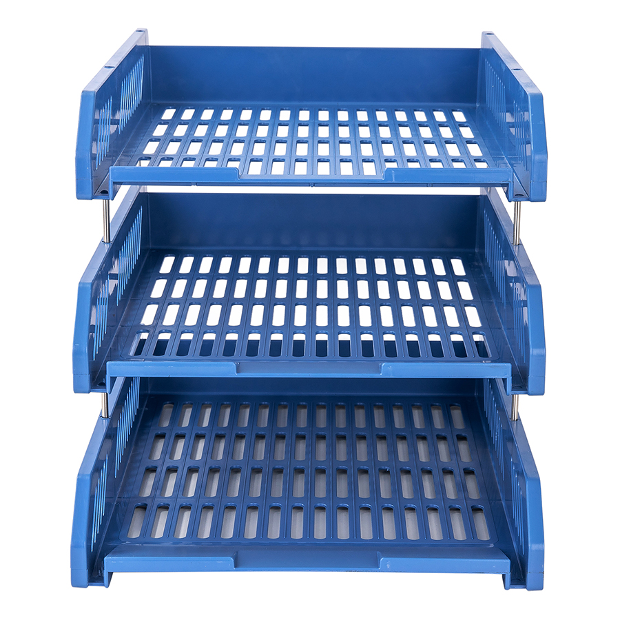 Khay đựng hồ sơ 3 ngăn có thể tháo rời khi không sử dụng.  Sản phẩm phù hợp với nhu cầu lưu trữ tài liệu, hồ sơ tạm thời tại khu vực làm việc.
