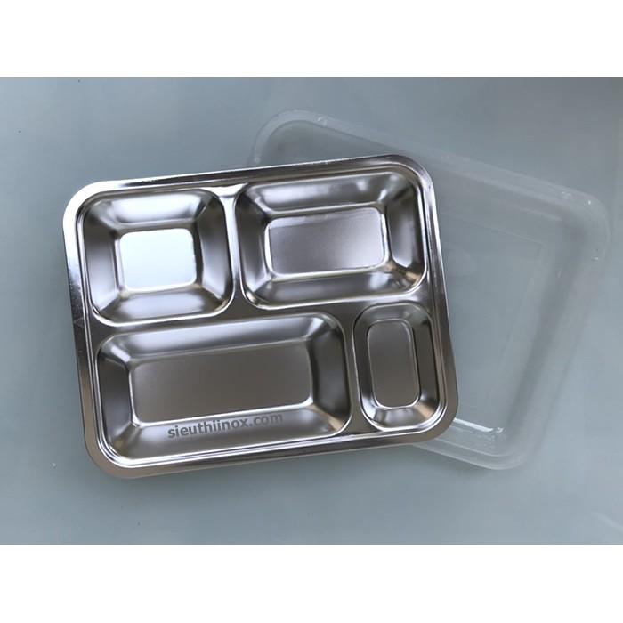Khay cơm inox 4 ngăn thích hợp cho suất ăn: học sinh, nhân viên văn phòng, khu công nghiệp