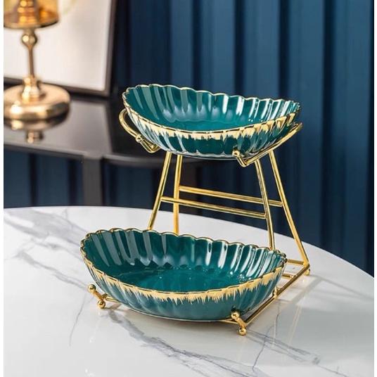 Khay đựng hoa quả, bánh kẹo, mứt Tết 2 tầng, 3 tầng bằng gốm sứ kèm đế kim loại mạ vàng cao cấp.