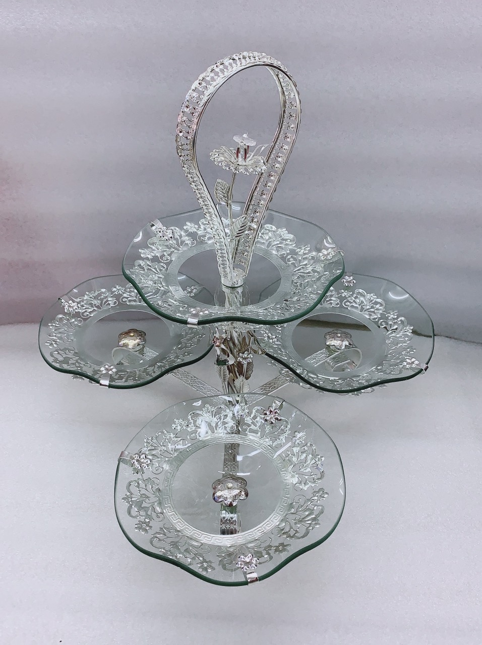Kiểu dáng sang trọng Tiện dụng và tối ưu Làm quà tặng hoặc dùng trong lễ hội Khay thủy tinh 4 tầng là đồ gia dụng - trang trí nội thất đa năng có thể