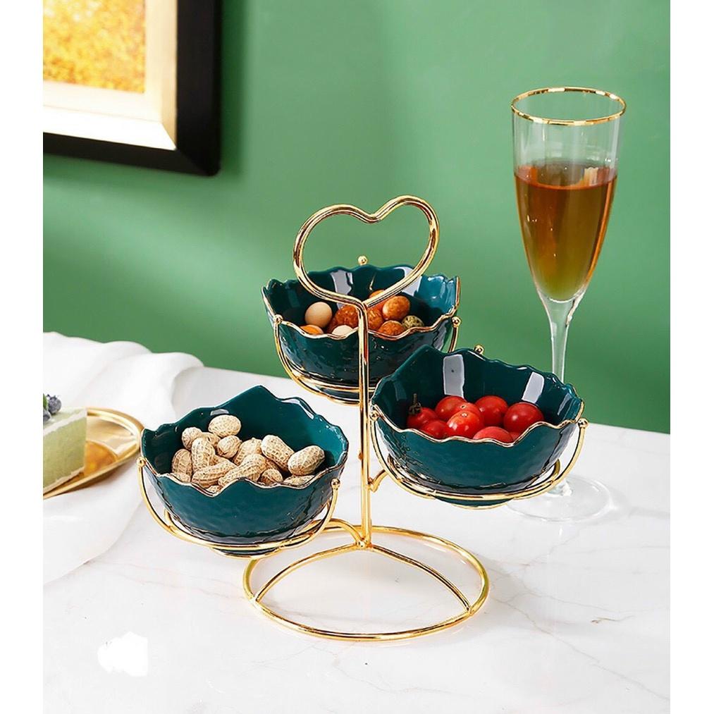 Mua tại TiktokKhay đựng hoa quả bánh kẹo sứ xanh cổ vịt , trắng và thủy tinh trong 3 tầng