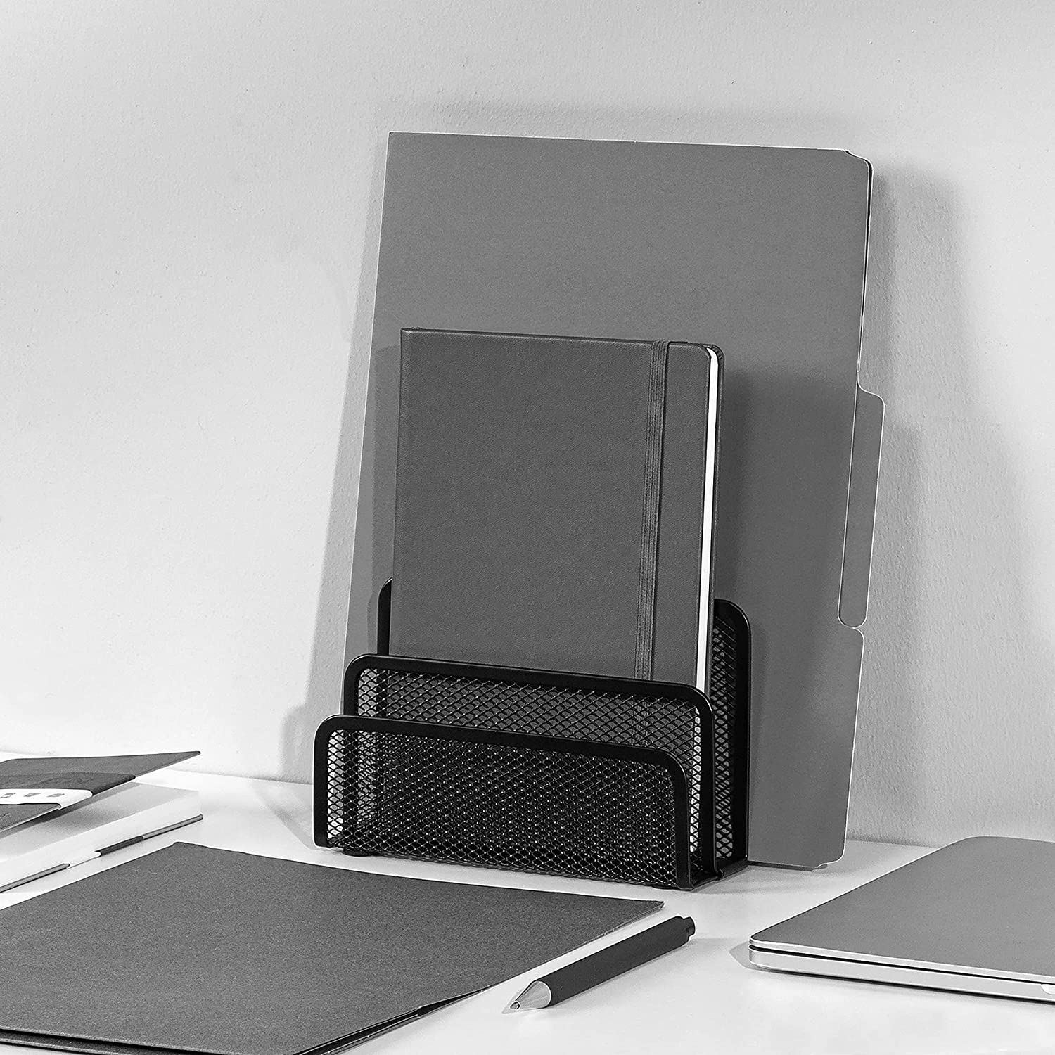 MÔ TẢ SẢN PHẨM Loại: Giá giữ tài liệu Chất liệu: Kim loại Màu sắc: Đen Kích thước: 13 x 7.5 x 17 cm Sử dụng: Để bàn Gói hàng bao gồm: 1 x Giá