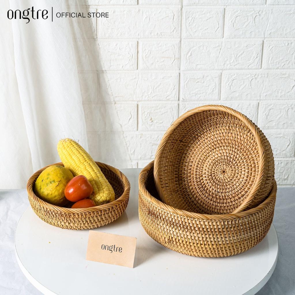 ✨Khay mây Guột ONGTRE hình Tròn dùng để đựng đồ ăn, Decor nhà cửa
