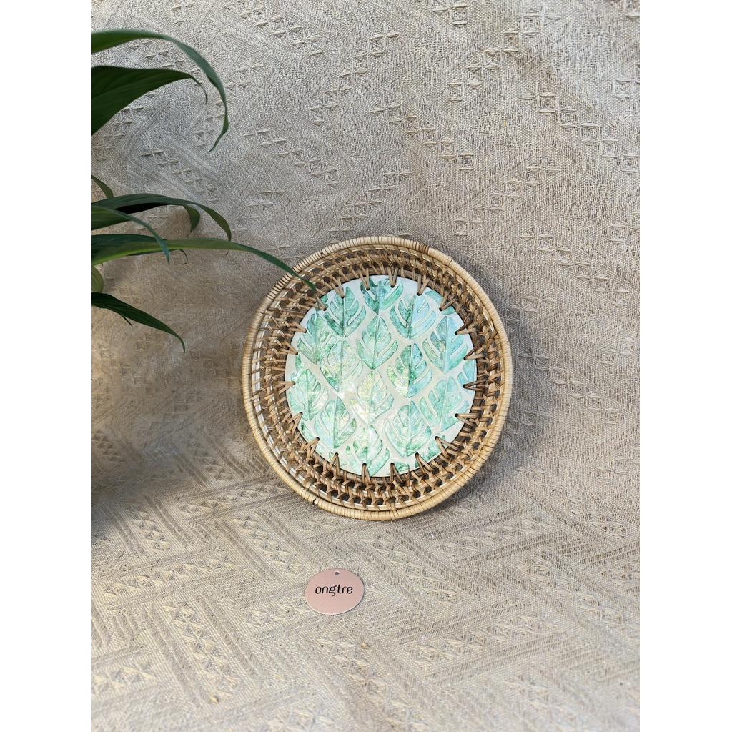 Khay mây tròn khảm trai có tay cầm ONGTRE đựng đồ, trang trí tiệc, decor chụp ảnh sản phẩm - Sản phẩm được làm hoàn toàn thủ công bởi những người thợ có tay nghề