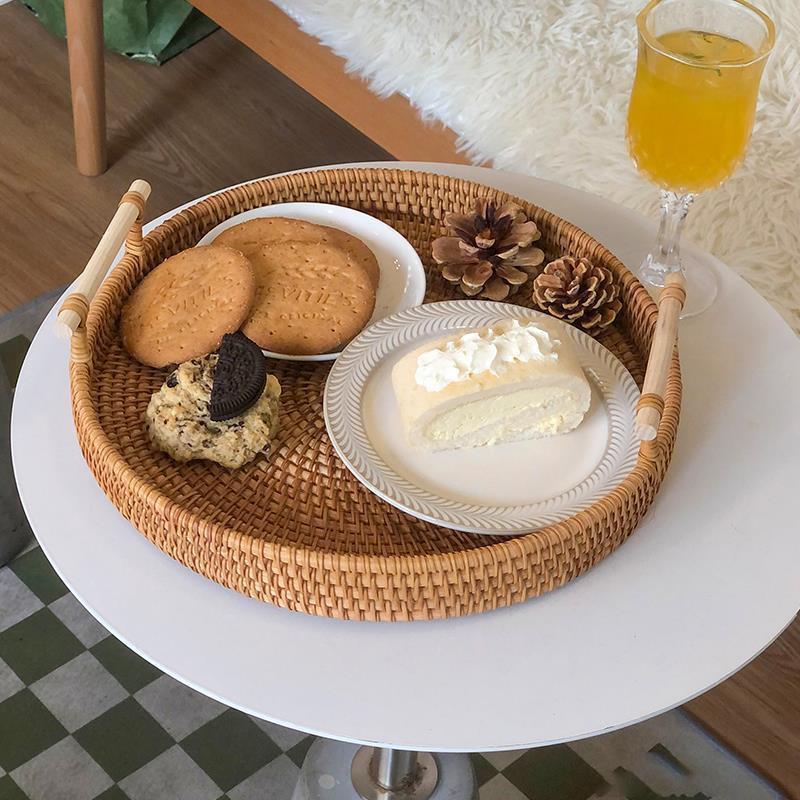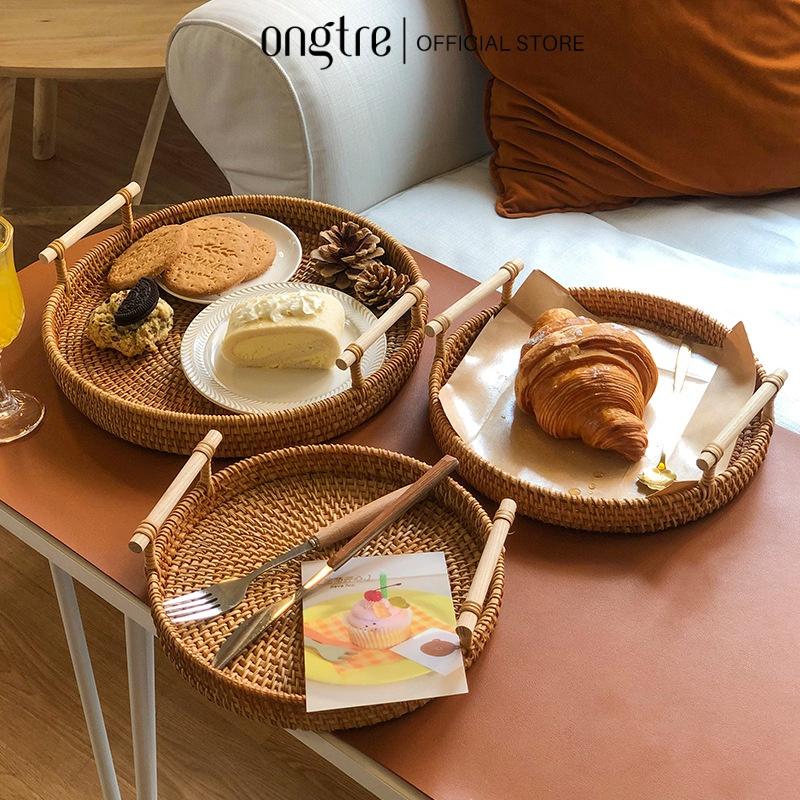 ✨Khay mây tròn có tay cầm ONGTRE đựng đồ, trang trí tiệc, decor chụp ảnh sản phẩm