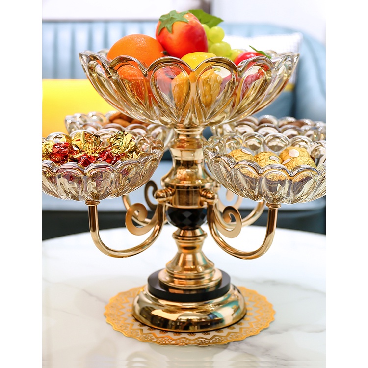Đĩa Thuỷ Tinh Đựng Hoa Quả, Khay Thuỷ Tinh Pha Lê Đựng Hoa Quả Sang Trọng - KHAY MỨT Chân Bồng Pha Lê Mạ Vàng Phong Cách Royal Sang Trọng - HÀNG CHÍNH HÃNG MINIIN