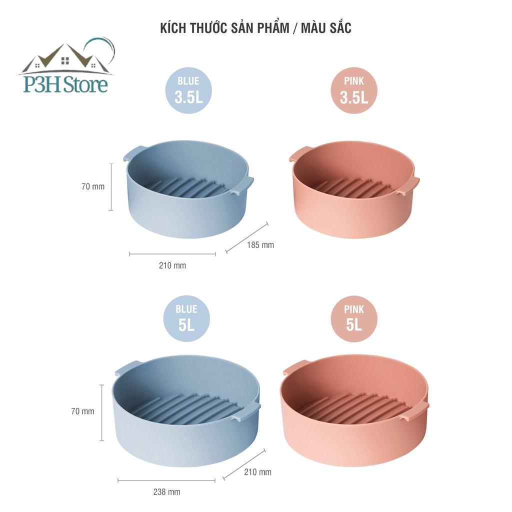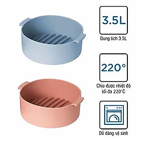 Mua tại TiktokKhay silicone Lock&Lock dành cho nồi chiên không dầu và lò vi sóng 3.5L và 5L, CKB002 CKB003 Chất liệu : Silicone chịu nhiệt độ cao trong lò chiên không dầu và lò vi sóng Màu sắc : Hồng , xanh biển Dung tích : 3.5L : 210 x 185 x 70 mm 5L : 238 x 210 x 70mm Sản phẩm sử dụng an toàn trong lò nướng , lò chiên không dầu , lò vi sóng Khả năng chịu nhiệt lên đến 220 độ C Có thể rửa sạch tái sử dụng nhiều lần mà không cần dùng giấy nến , góp phần bảo vệ môi trường Được thiết kế để dầu chảy xuống tự nhiên nhờ vào các khe rãnh , tập trùng vào vành xung quanh khay , giúp thực phẩm có thể giữ được độ ẩm và giòn , tươi ngon Vệ sinh sản phẩm : chỉ cần lộn ngược lại khay và vệ sinh bình thường Lưu ý :