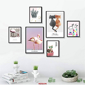 ✨[KHỔ LỚN] SET 6 Tranh Laminate Tráng Gương - Tranh Treo Tường Phong Cách Bắc Âu - Hồng Hạc