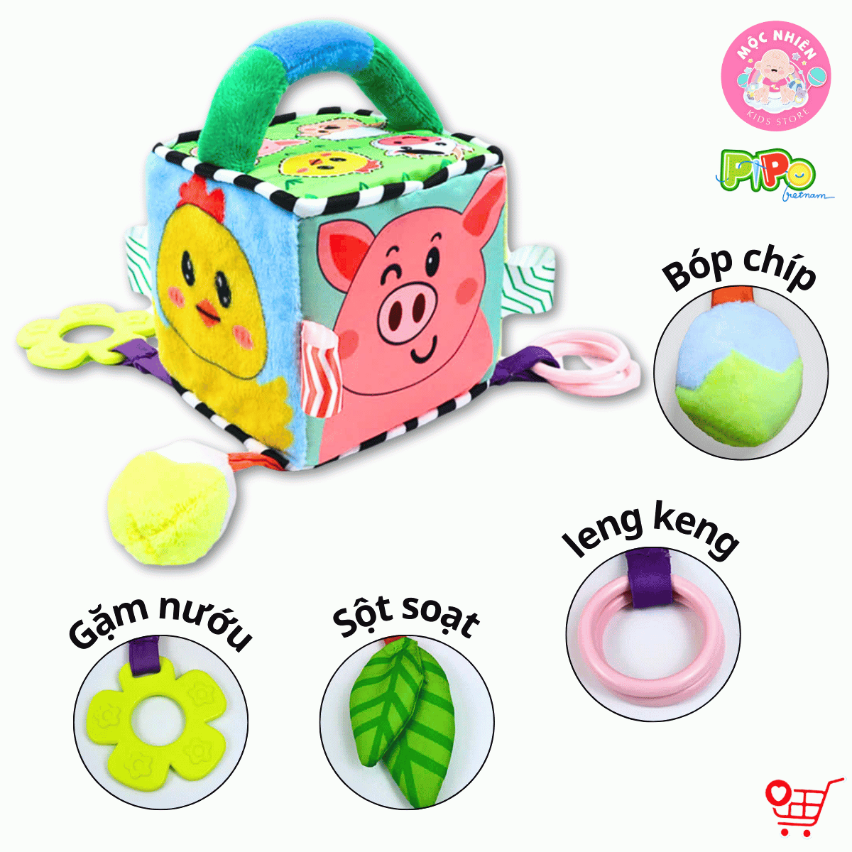 Mua tại TiktokKhối vải luyện kỹ năng cho bé là đồ chơi tương tác 4 chiều cho bé. Được xây dựng trên khối lập phương 6 mặt với các chức năng hình dáng và vật liệu khác nhau. Cung cấp cho bé các kiến thức về con vật phong phú.