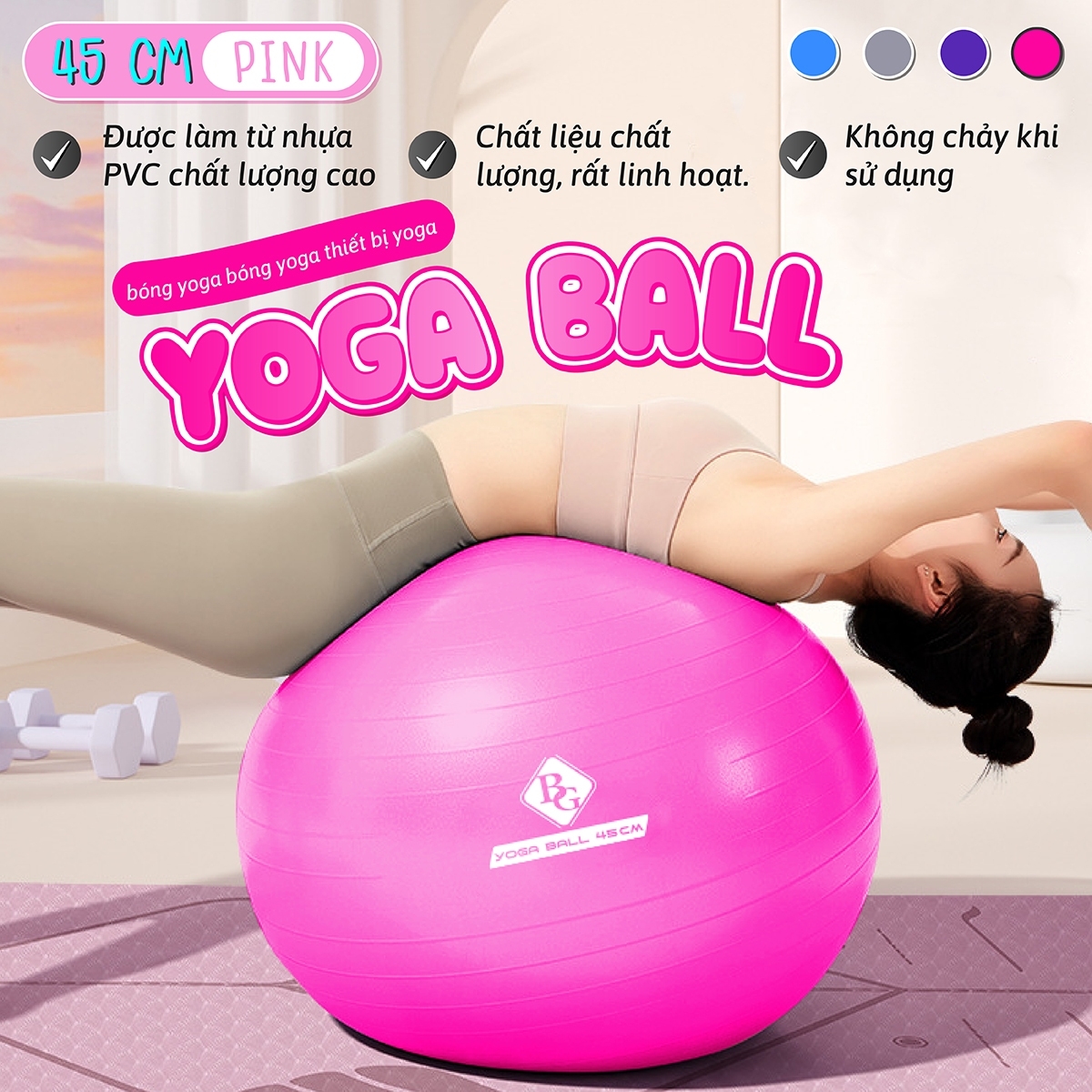 Mua tại TiktokTập luyện với bóng tập Yoga giúp cơ thể bạn thêm khoẻ mạnh, mềm dẻo, một cơ bắp thật săn chắc và khả năng cân bằng tốt chỉ bằng những bài tập đơn giản và nhẹ nhàng. Tư thế chủ yếu khi bạn tập là ngồi vào bóng giống như bạn ngồi vào ghế thường và tập được nhiều động tác khác nhau để từ đó mang lại cho bạn cơ thể bạn một thân hình khoẻ đẹp, đường cong mềm mại, eo thon GIỚI THIỆU CHI TIẾT SẢN PHẨM : Bóng tập làm từ cao su chất lượng cao với công nghệ chống nổ, dày, bền đẹp, mềm mại, độ co giãn đàn hồi tốt. NHỮNG LỢI ÍCH KHI TẬP YOGA VỚI BÓNG