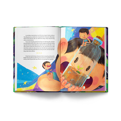 Quyển sách được in màu, bìa cứng dày dặn cùng hiệu ứng kim tuyến lấp lánh, tặng kèm 2 Bookmark ngộ nghĩnh và 3 Postcard xinh xắn khi mua sách.
