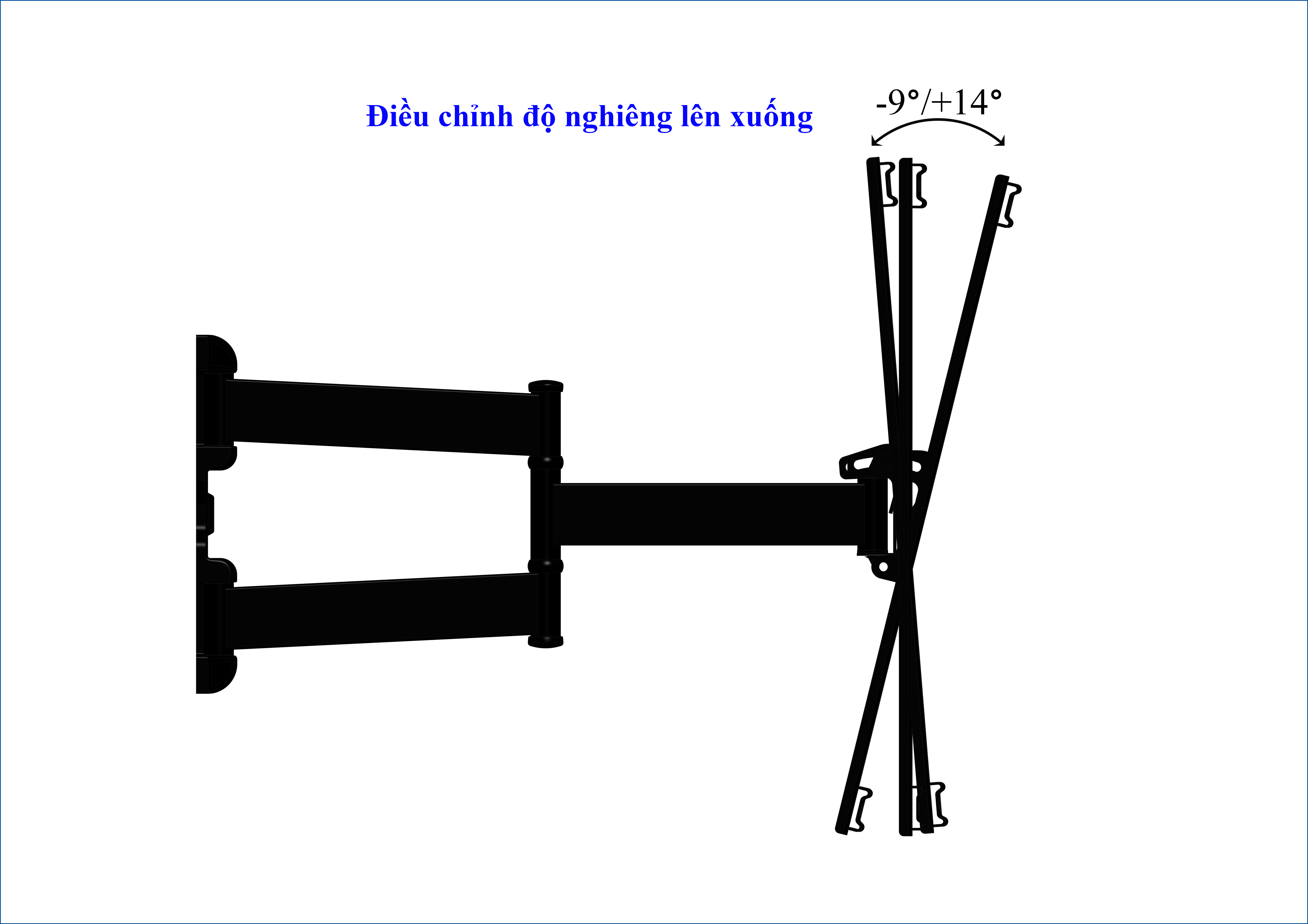 Thông số kĩ thuật - Vesa: 400x400 mm - Xoay 180 độ tại các khớp nối - Thiết kế kẹp nhựa đế nẹp dây điện - Khoảng cách kéo dãn tối đa: 468mm - Thu