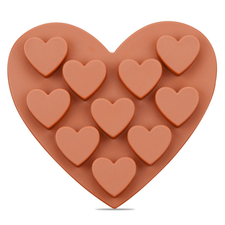 Bộ 10 khuôn silicon 3 lớp làm bánh, rau câu, bánh bông lan, bánh da lợn hình tim – Mã số 1140 - 1 bộ 10 khuôn - Chất liệu: Silicon - Xuất xứ: Nhập