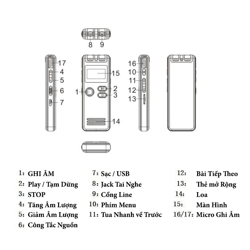 - USB 2.0 "tốc độ cao": Truyền tải dữ liệu "nhanh chóng" sang máy tính, "chia sẻ" bản ghi âm "dễ dàng".